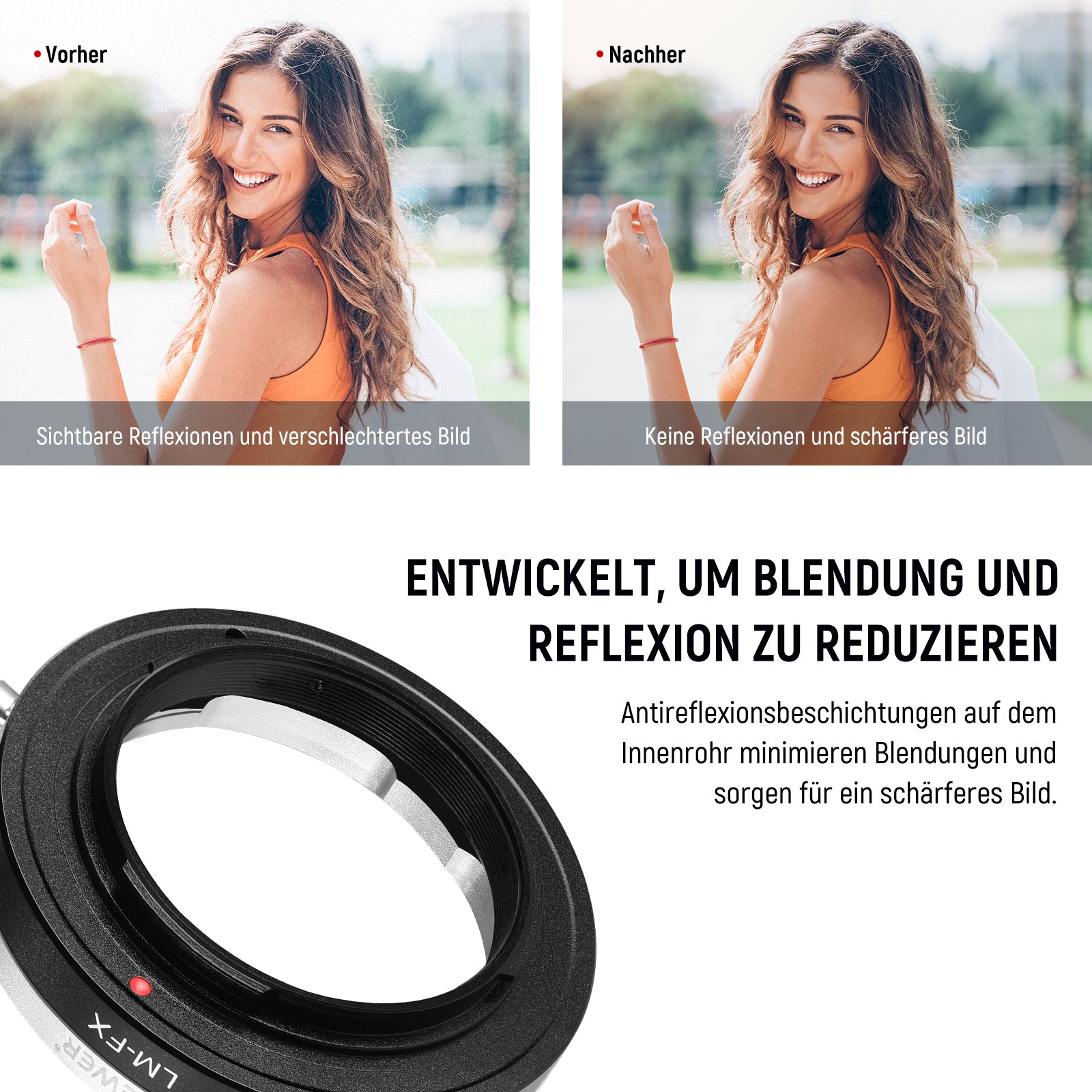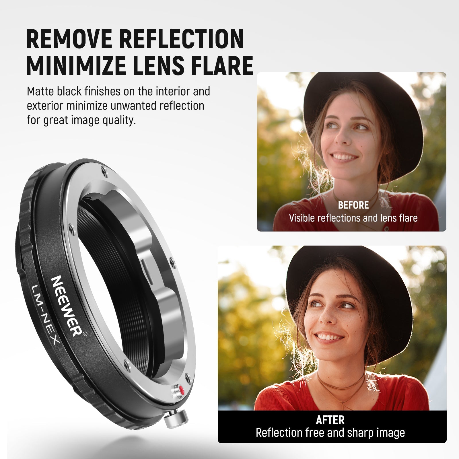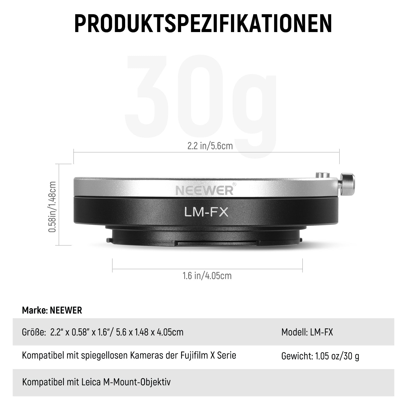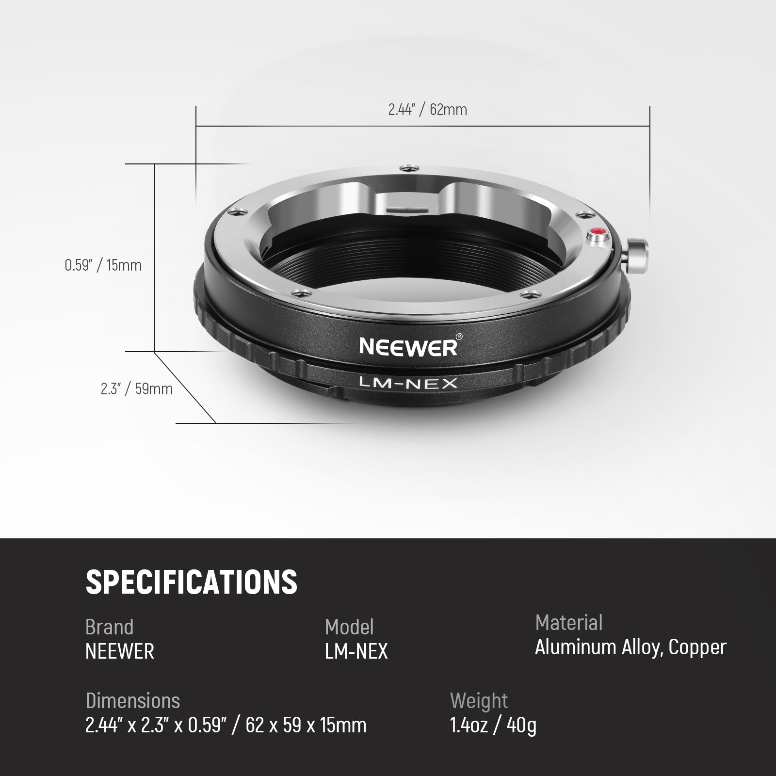 NEEWER bietet eine breite Auswahl an Objektivadaptern. Egal, ob Sie einen EF-Mount-Adapter oder einen M-Mount-Adapter benötigen, hier finden Sie das passende Produkt. Diese Kamera-Objektivadapter sind robust und stabil. Die präzise CNC-Bearbeitung sorgt dafür, dass die verchromten Metallanschlüsse äußerst langlebig sind und perfekt zu Ihrem Objektiv und Ihrer Kamera passen. Wählen Sie den passenden Adapter für Ihre Kamera aus.