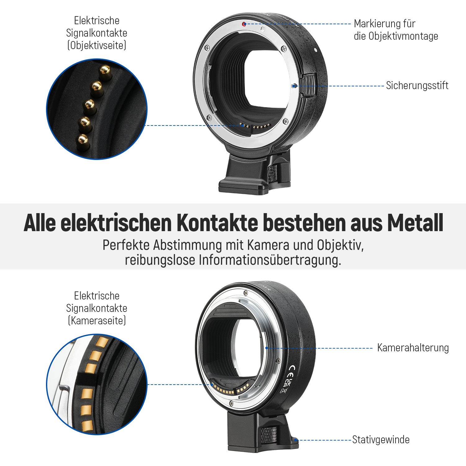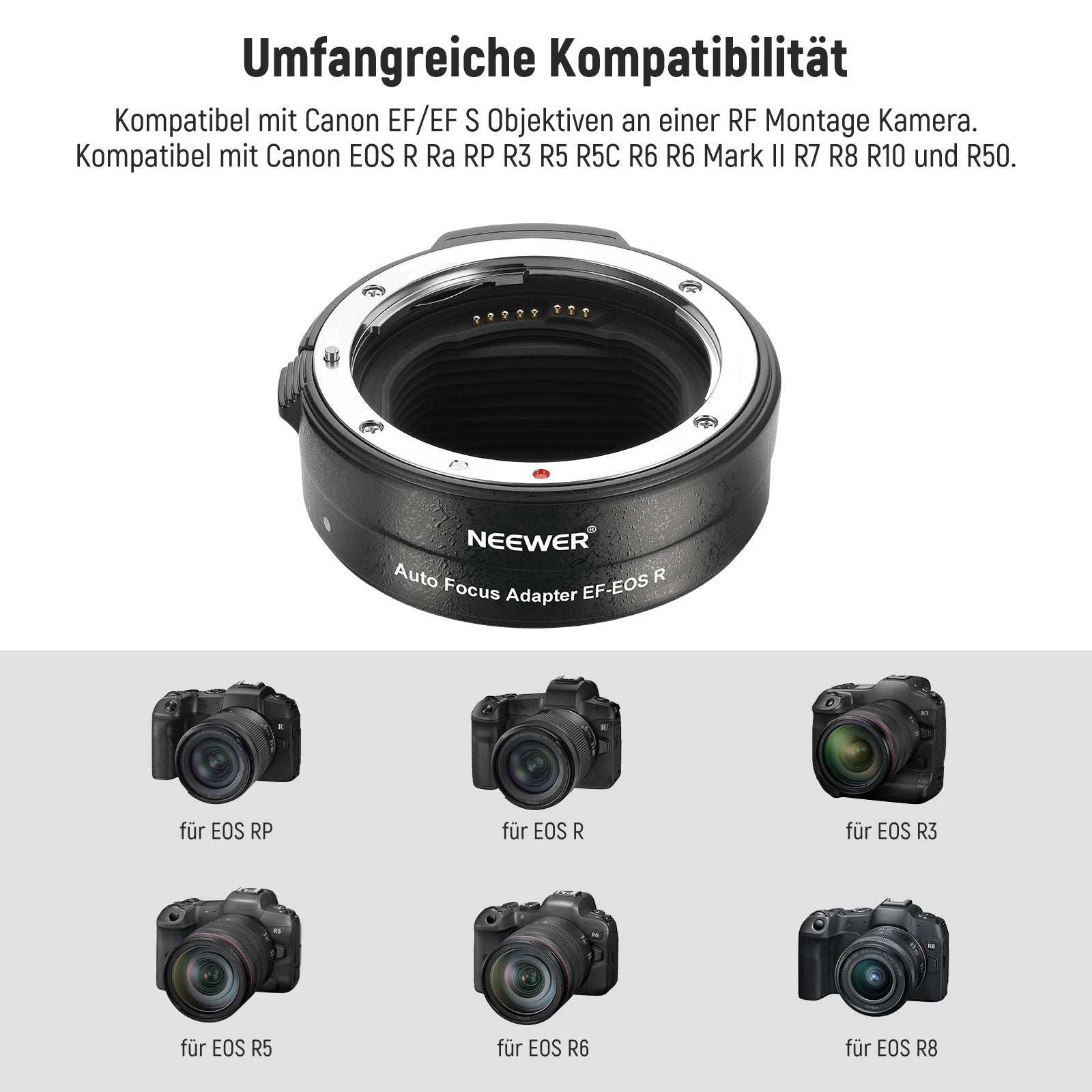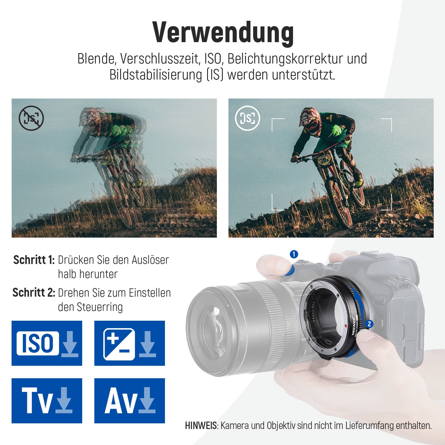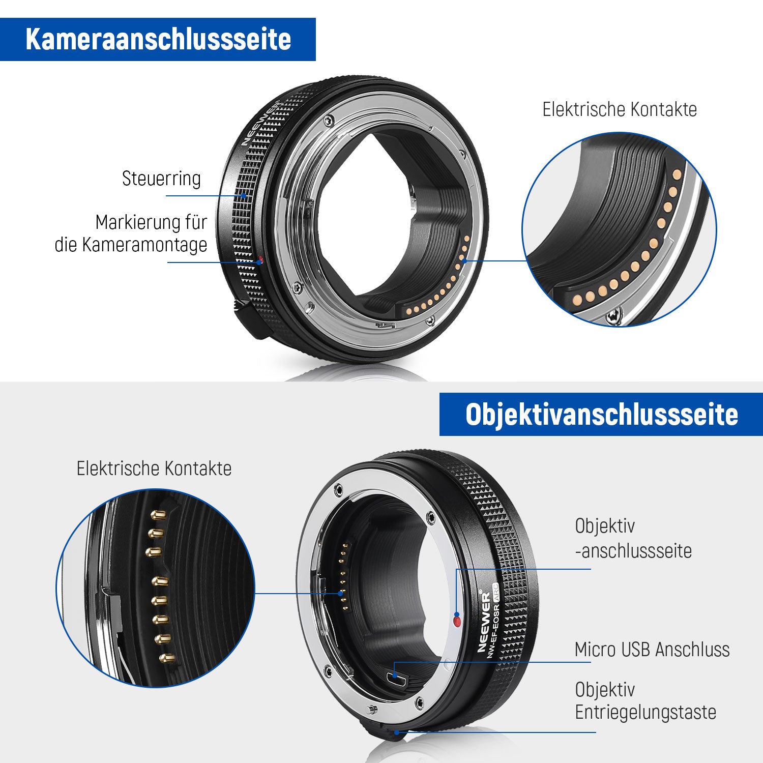 NEEWER bietet eine breite Auswahl an Objektivadaptern. Egal, ob Sie einen EF-Mount-Adapter oder einen M-Mount-Adapter benötigen, hier finden Sie das passende Produkt. Diese Kamera-Objektivadapter sind robust und stabil. Die präzise CNC-Bearbeitung sorgt dafür, dass die verchromten Metallanschlüsse äußerst langlebig sind und perfekt zu Ihrem Objektiv und Ihrer Kamera passen. Wählen Sie den passenden Adapter für Ihre Kamera aus.