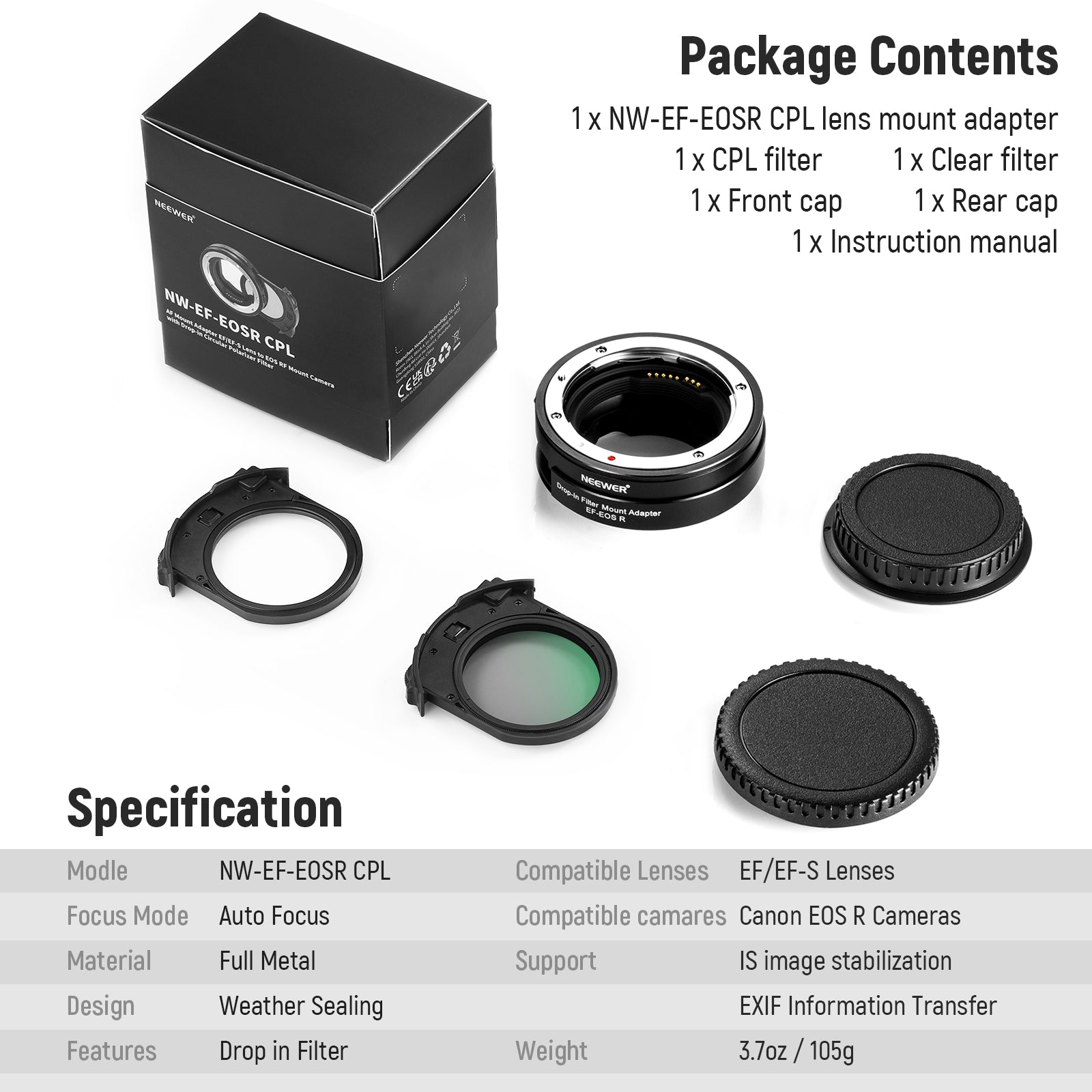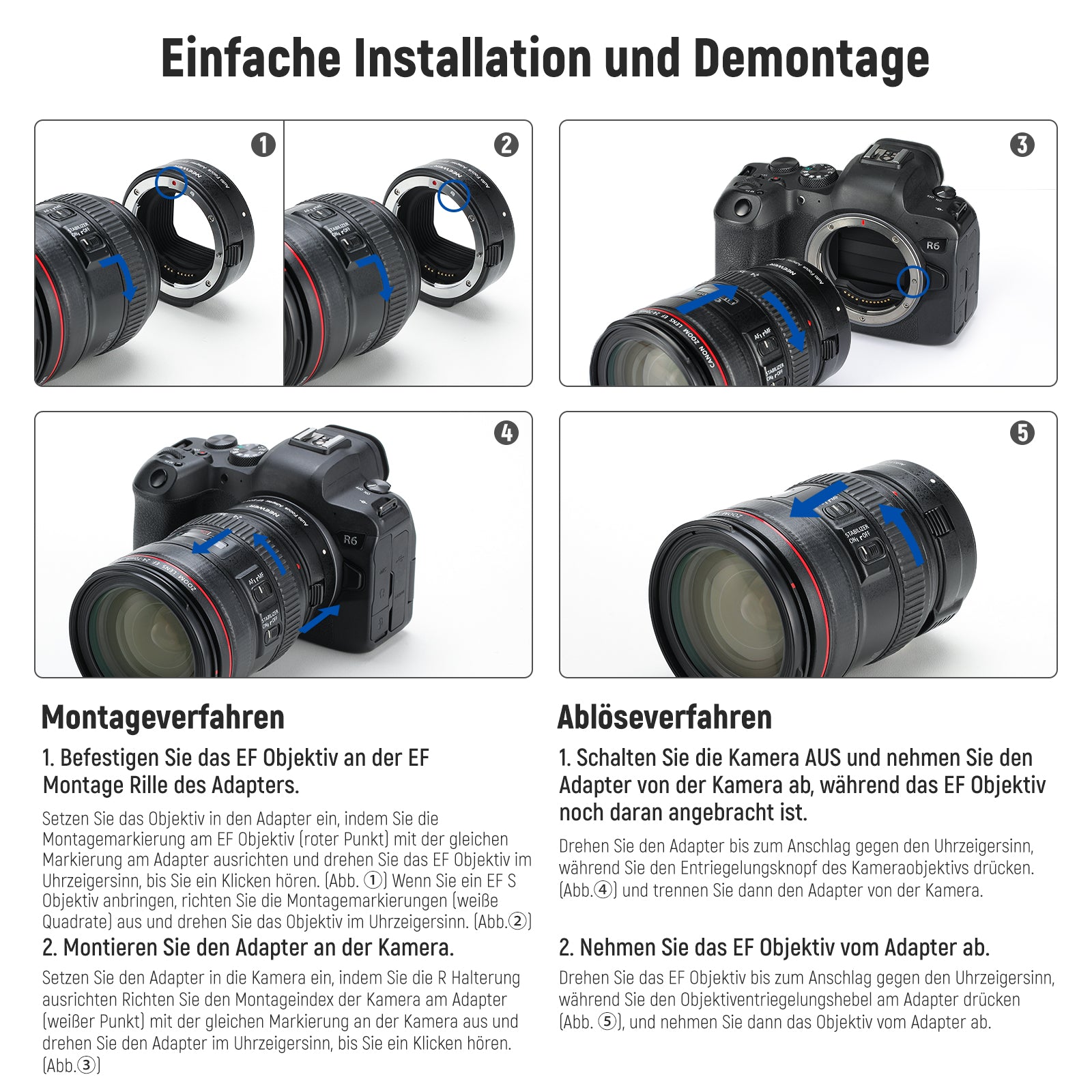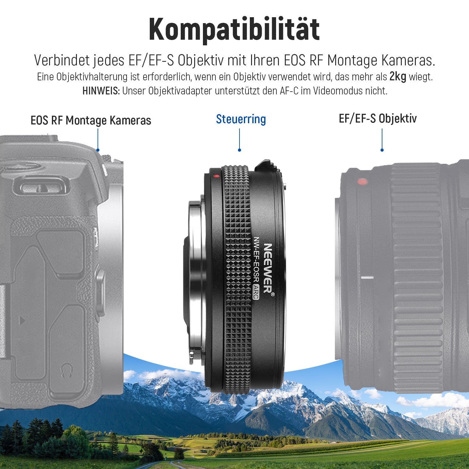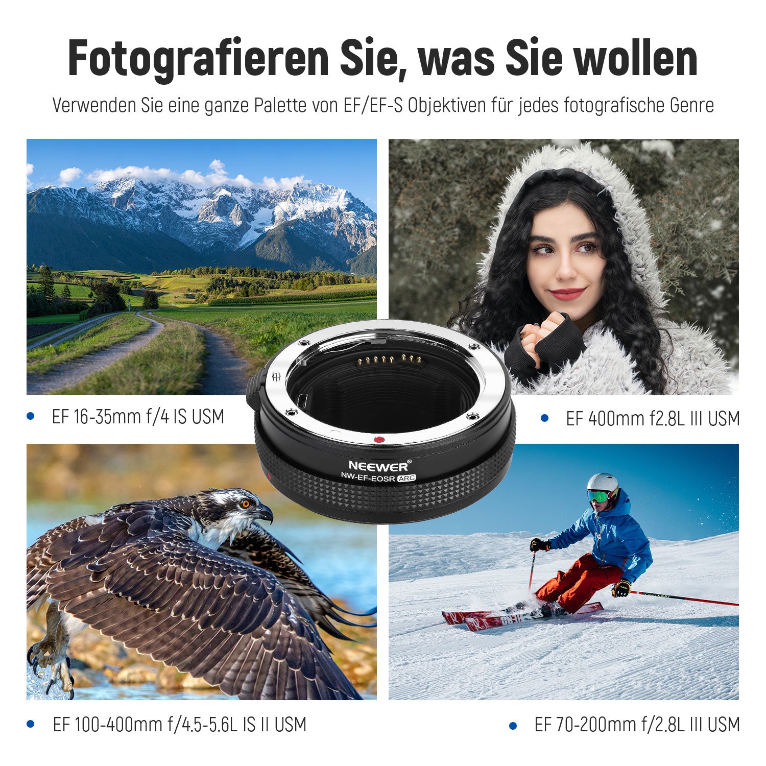 NEEWER bietet eine breite Auswahl an Objektivadaptern. Egal, ob Sie einen EF-Mount-Adapter oder einen M-Mount-Adapter benötigen, hier finden Sie das passende Produkt. Diese Kamera-Objektivadapter sind robust und stabil. Die präzise CNC-Bearbeitung sorgt dafür, dass die verchromten Metallanschlüsse äußerst langlebig sind und perfekt zu Ihrem Objektiv und Ihrer Kamera passen. Wählen Sie den passenden Adapter für Ihre Kamera aus.