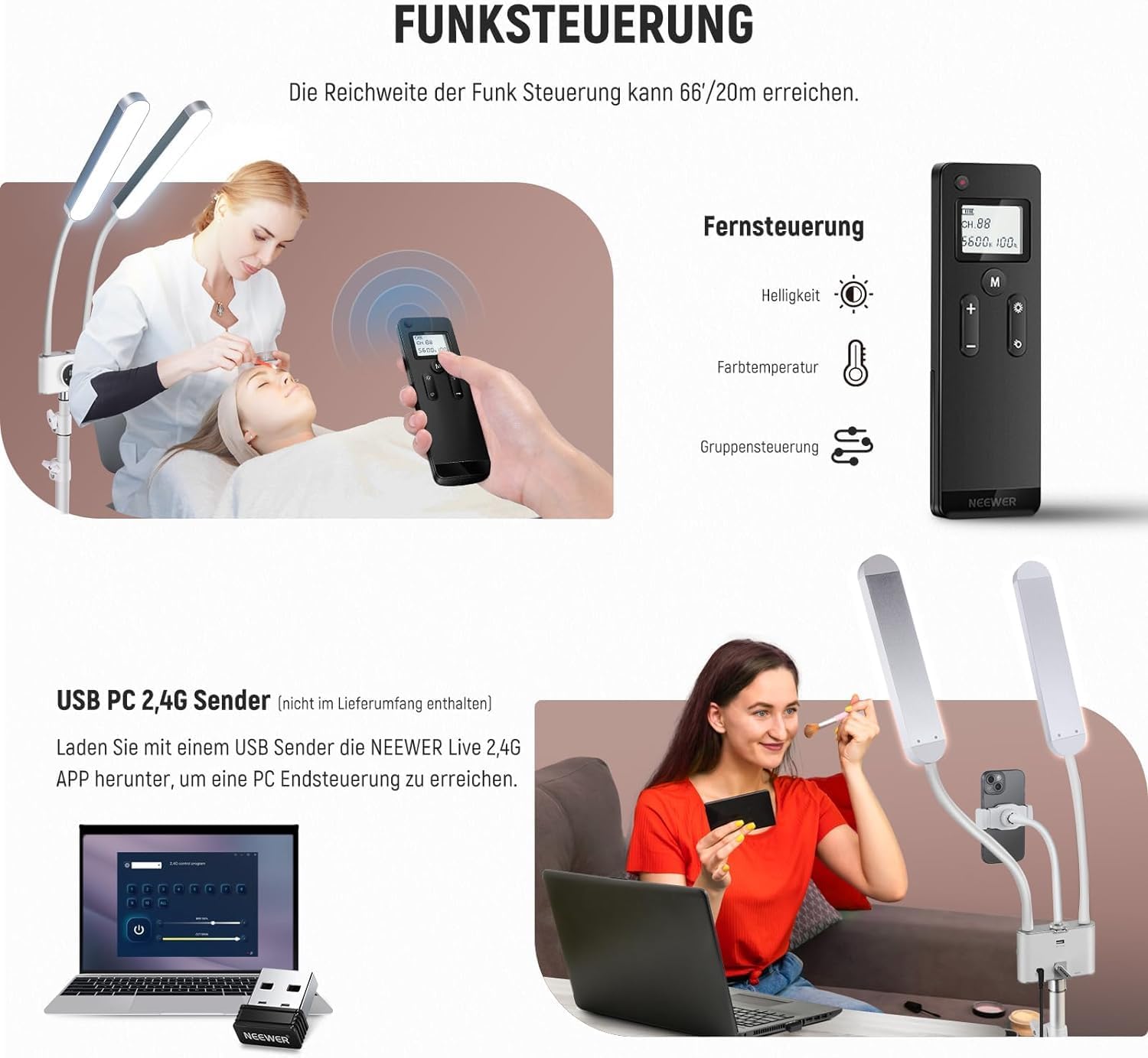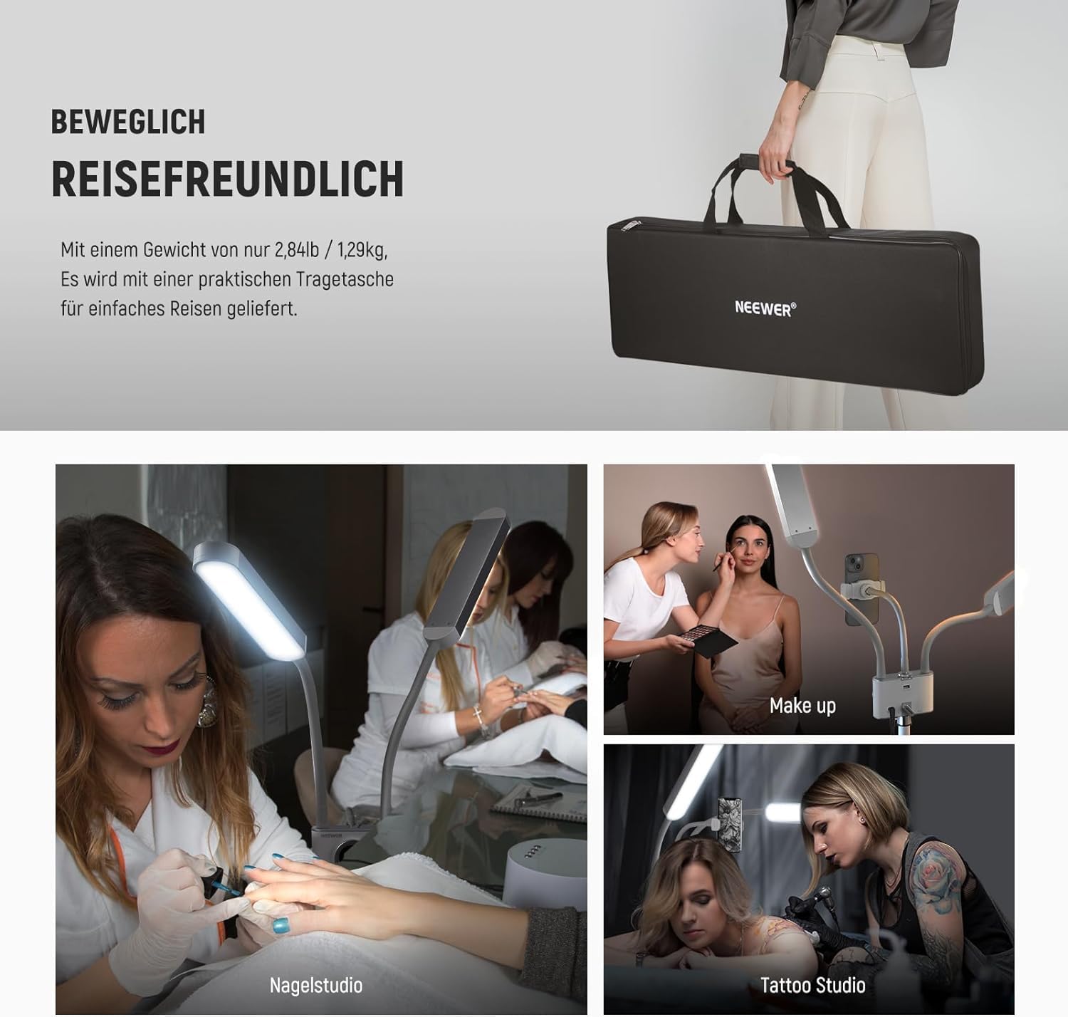 NEEWER BH40B Bi-Color Kosmetiker Lichtset mit Handyhalterung und Reisetaschenset