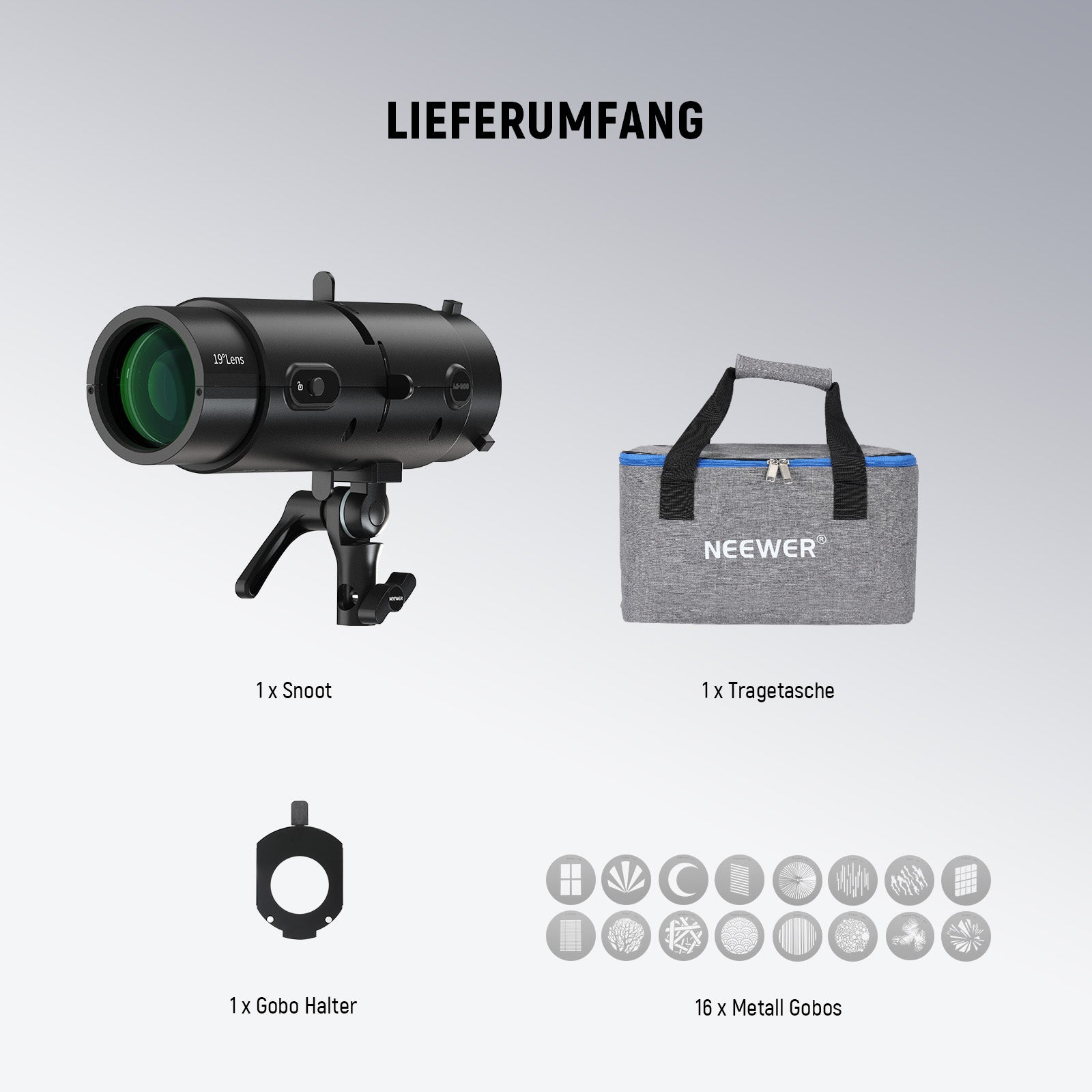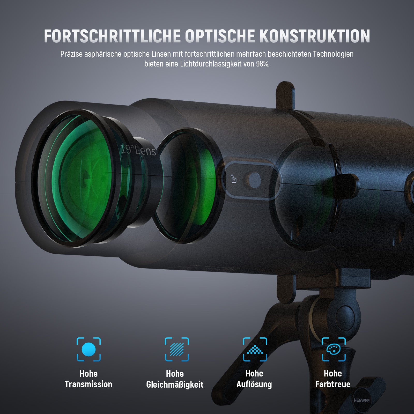 NEEWER LS-300 19° Spotlight Optischer Snoot für 300W Bowens Mount LED Videoleuchten