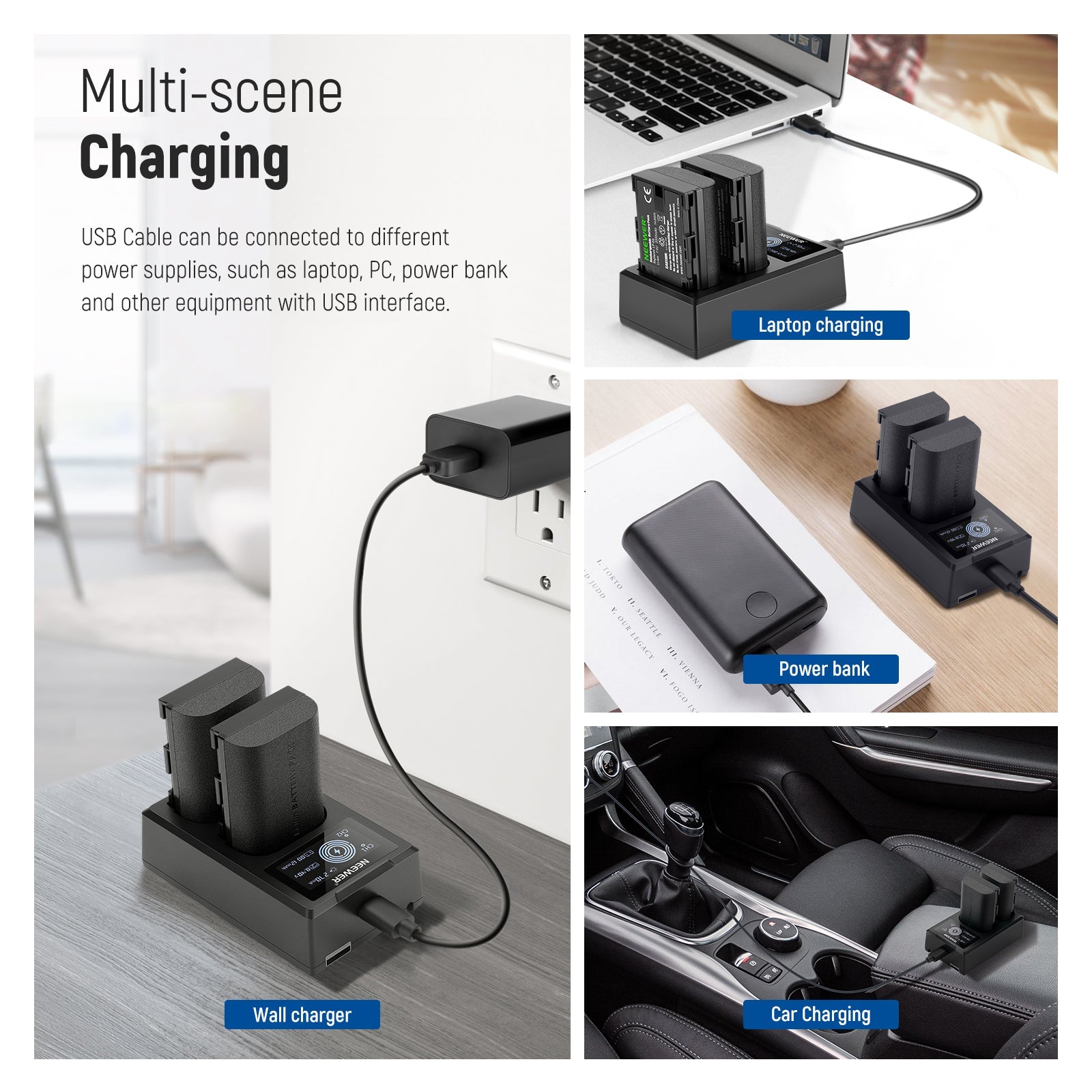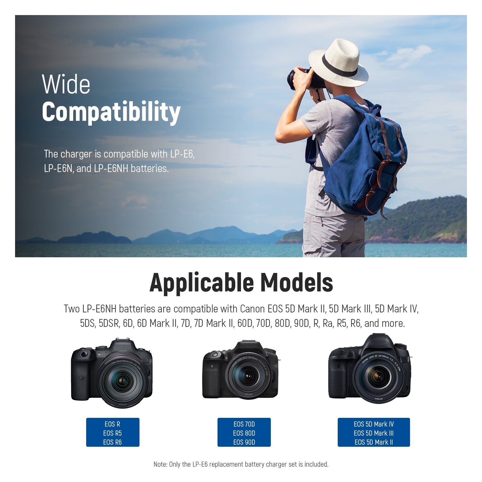 NEEWER 2-Pack LP-E6NH 2250mAh R6 II Canon Replacement Batteries Charger Set
