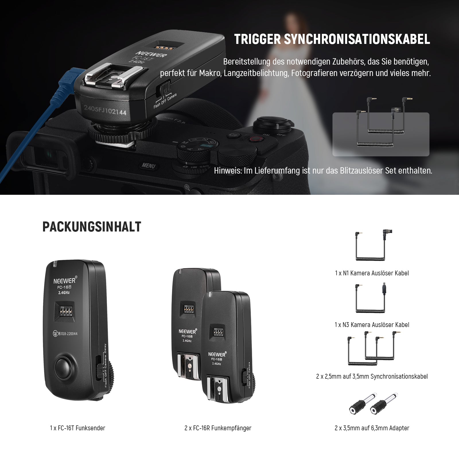 - Artikel Typ: Drahtloser Auslöser Empfänger Set