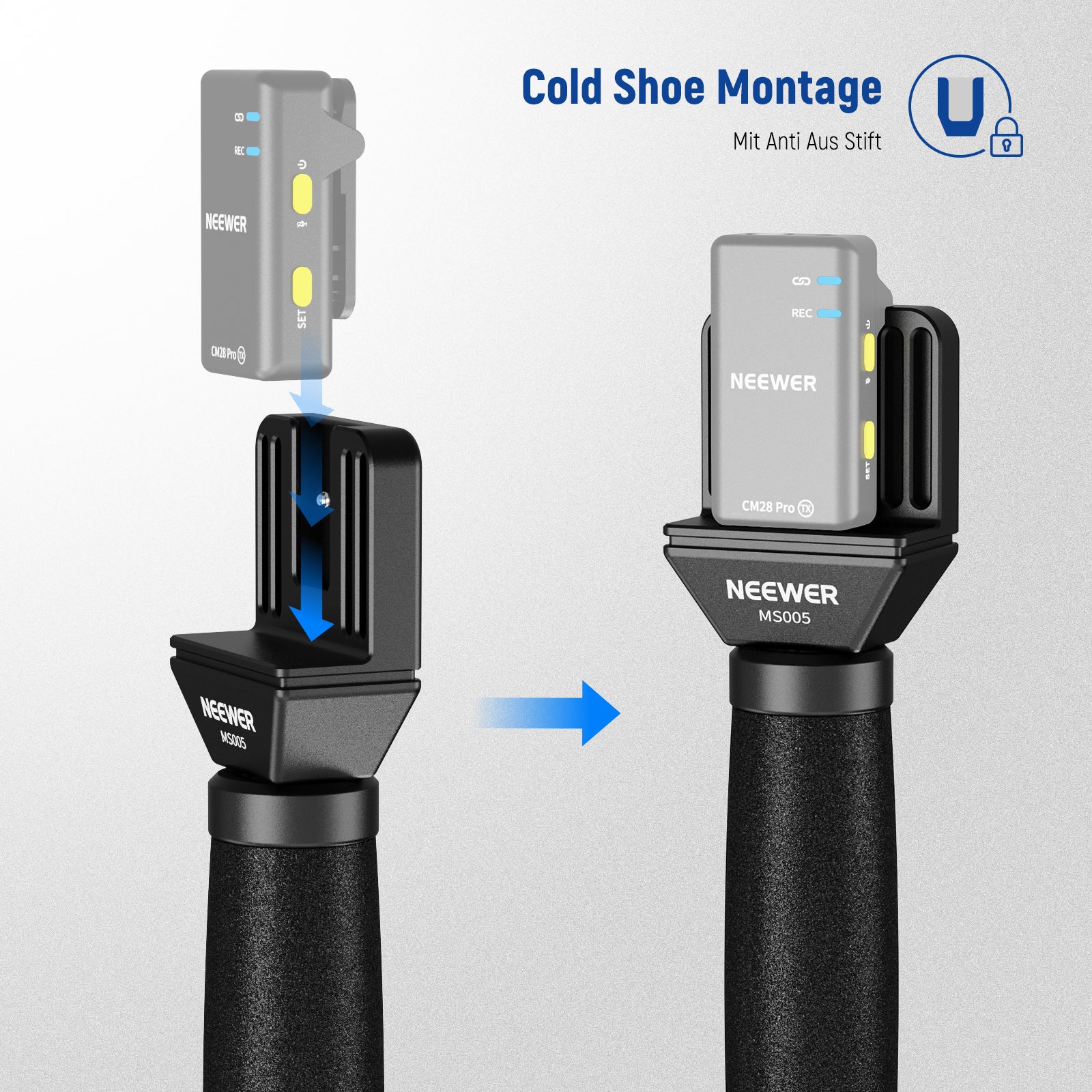 - Standard Anti Off Cold Shoe- Dieser Mikrofongriff verfügt über einen Anti Off Cold Shoe, der Ihr kabelloses Lavaliermikrofon vertikal montiert und ein Herunterfallen verhindert. Kompatibel mit NEEWER CM31; kompatibel mit RODE Wireless Go II 2; kompatibel mit DJI Mic; kompatibel mit Hollyland Lark 150; kompatibel mit Synco G1/A2; kompatibel mit SmallRig W60 und anderen Ansteckmikrofonen mit cold shoes.