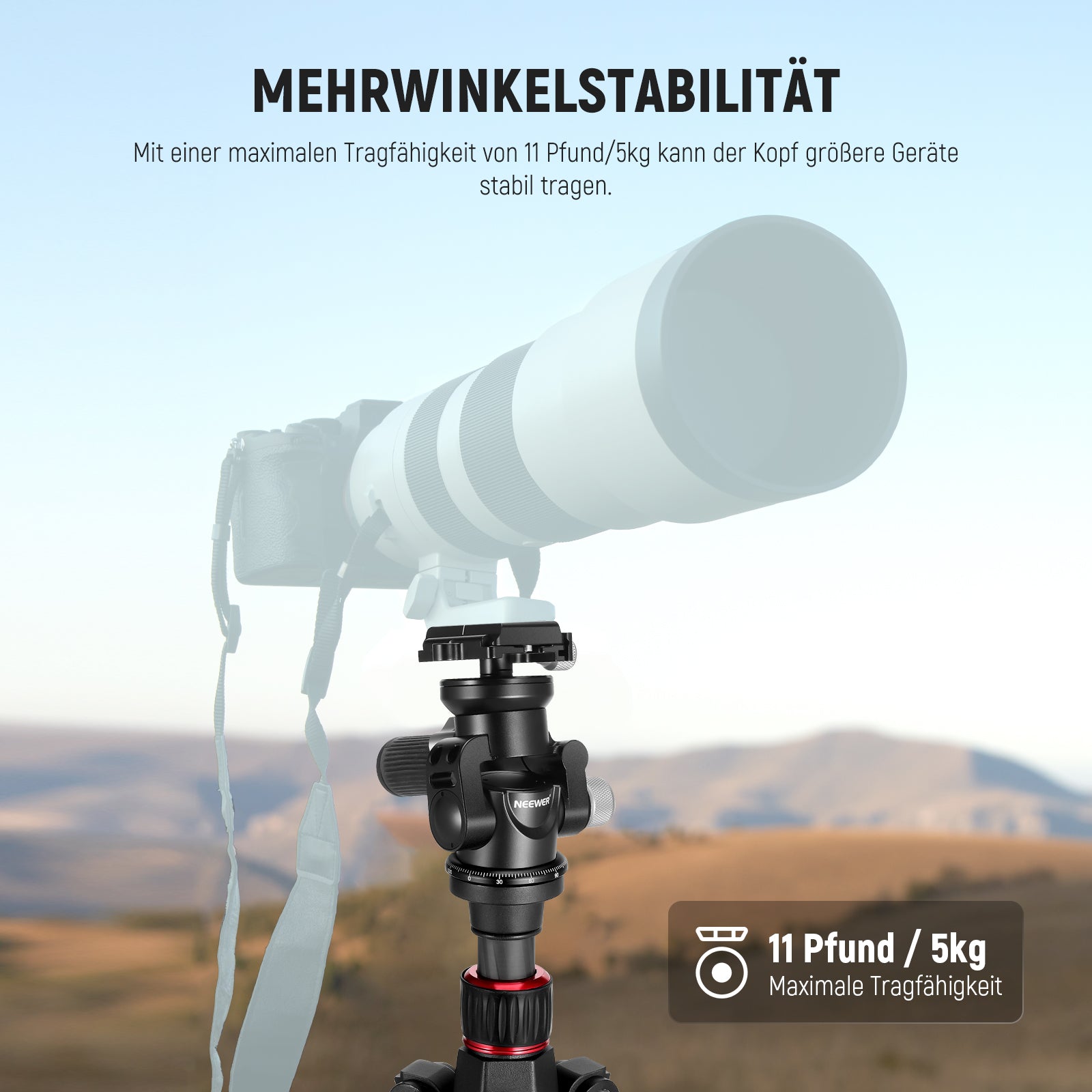 - Flexibler und dennoch stabiler Videostativkopf-Der Metall Stativkopf NEEWER TH03 verfügt über einen Neige und Schwenkgriff und dreht die Kamera mühelos um 360° oder neigt sie um +90°/-60°, wodurch nahtlose Übergänge von horizontalen zu vertikalen Kompositionen gewährleistet werden und Kameras bis zu 5kg auch beim Einstellen stabil unterstützt werden, ideal für Fotografie, Filmen, Videoaufnahmen, Vlogging, Live Streaming usw.