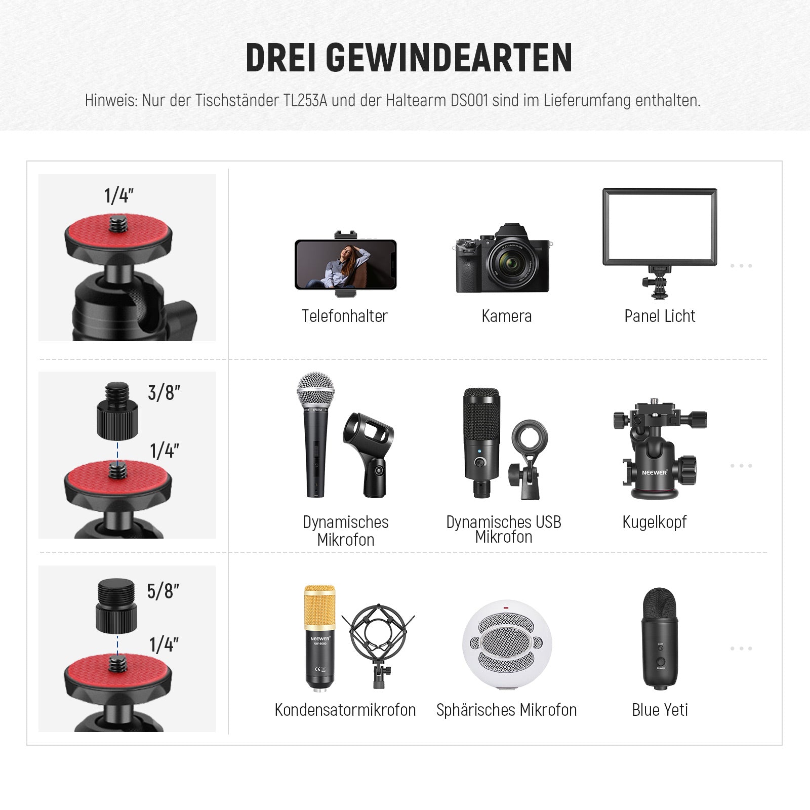 - Praktische Schraubadapter- Zwei Schraubadapter (1/4" bis 3/8" und 1/4" bis 5/8") geben Ihnen die Möglichkeit, eine Vielzahl von Geräten und Zubehör für umfangreiche Anwendungen zu montieren, wie z. B. Zoom Anrufe, Videokonferenzen, Podcasts, Live Streaming, YouTube/TikTok Videos, Online Unterricht und mehr