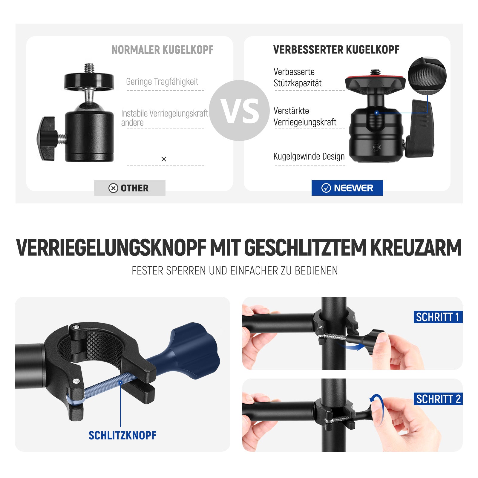 NEEWER TL253A+DS001 Tisch Kamerastativ mit 2 Teleskop-Auslegearmen