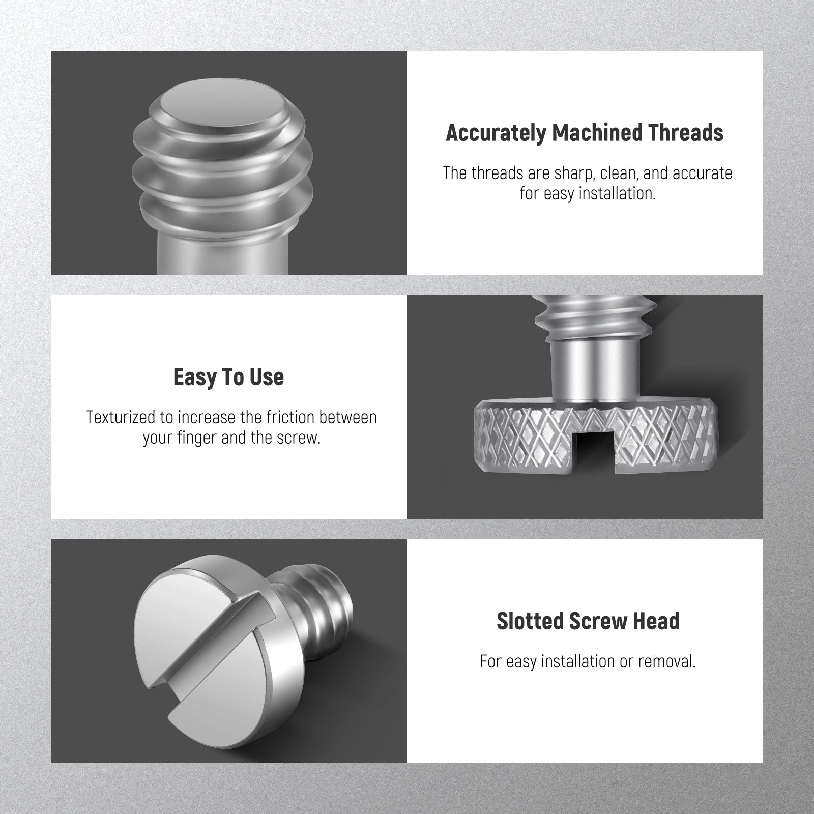 - 【Umfangreiche Kompatibilität】 Die 1/4" Schlitzschrauben sind mit Kameramontageplatten, Schnellwechselplatten, Stativen, Einbeinstativen sowie Kamera- und Teleskophalterungen mit 1/4" Gewindelöchern kompatibel