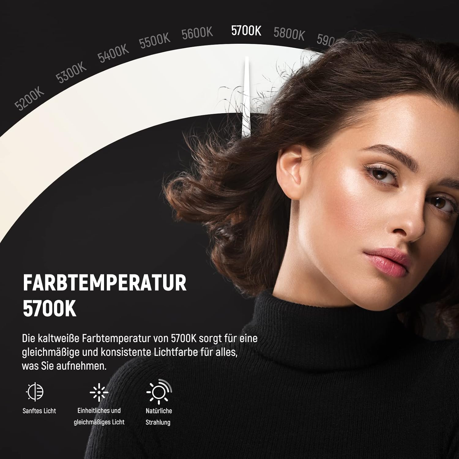- 【Stabile Farbtemperatur】 5700K kühle weiße Farbtemperatur liefert eine einheitliche und konsistente Lichtfarbe für alles, was Sie aufnehmen