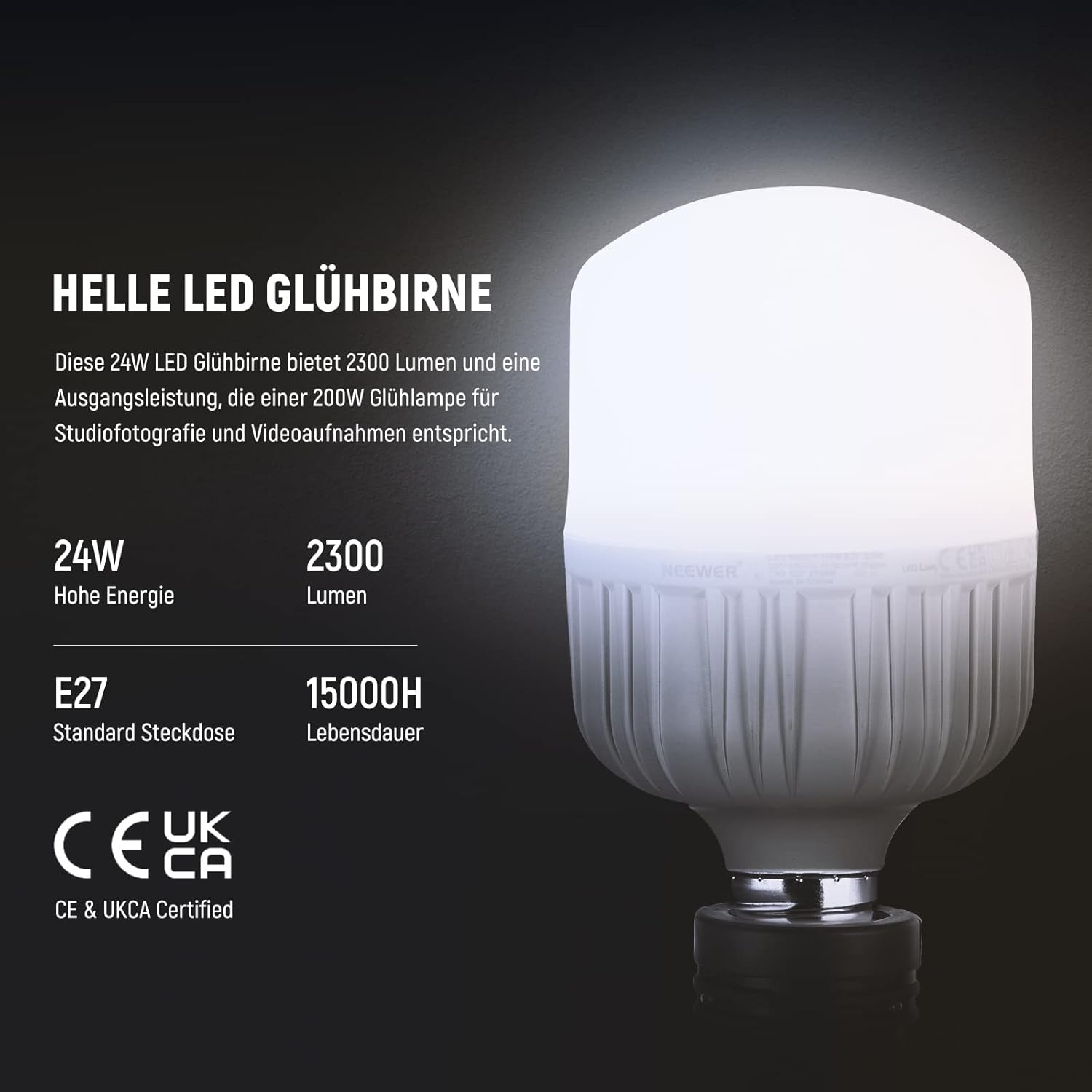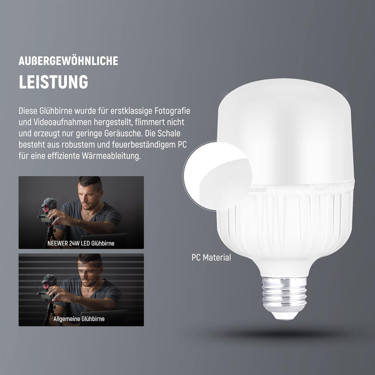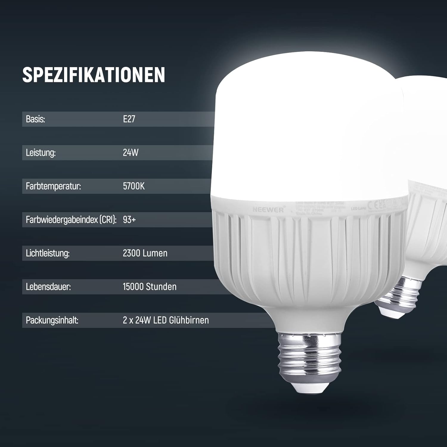 NEEWER 2er Pack T80 E27 24W LED Glühbirnen