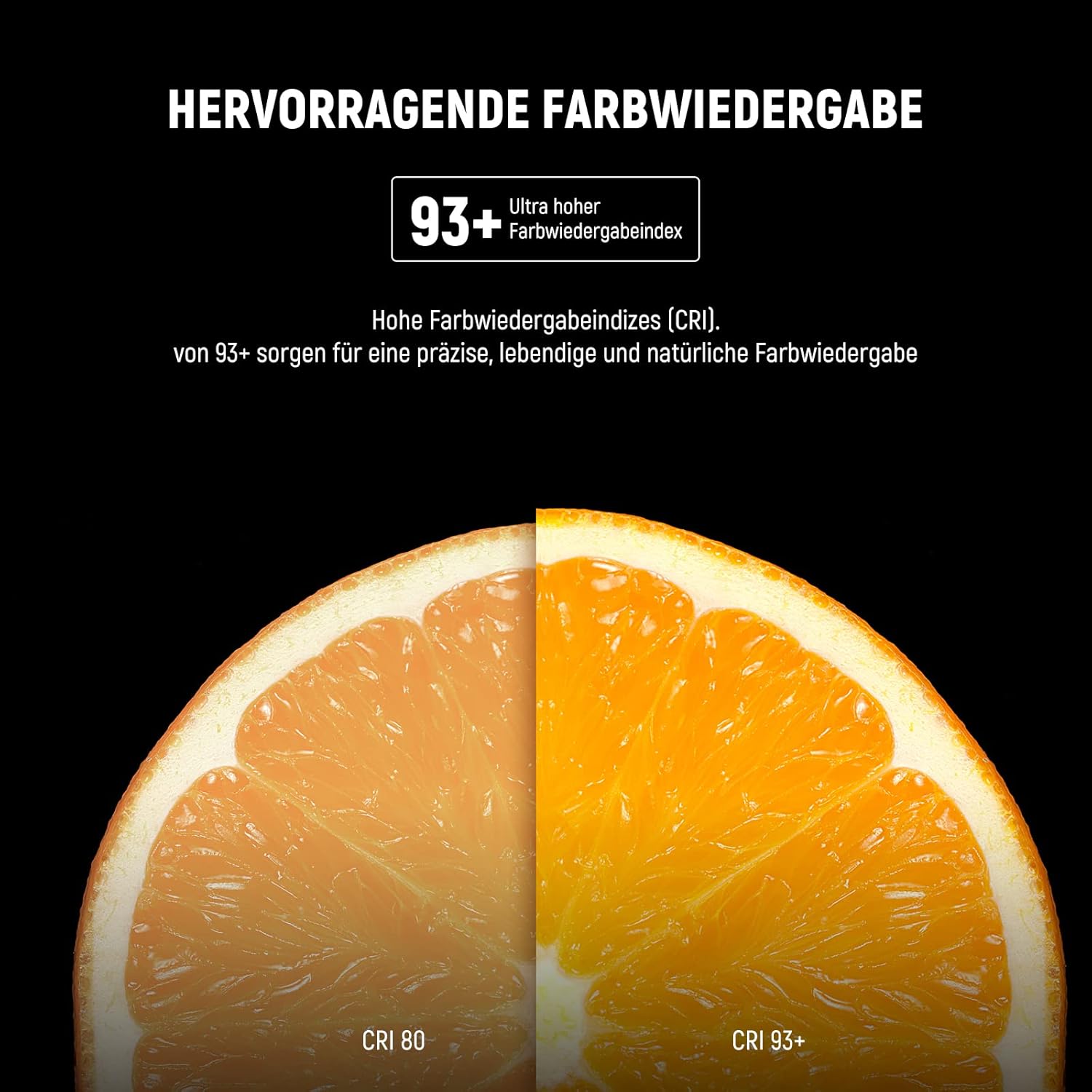 - 【Hervorragende Farbtreue】 Der hohe Farbwiedergabeindex (CRI) von 93+ bietet Ihnen eine genaue, lebendige und natürliche Farbwiedergabe