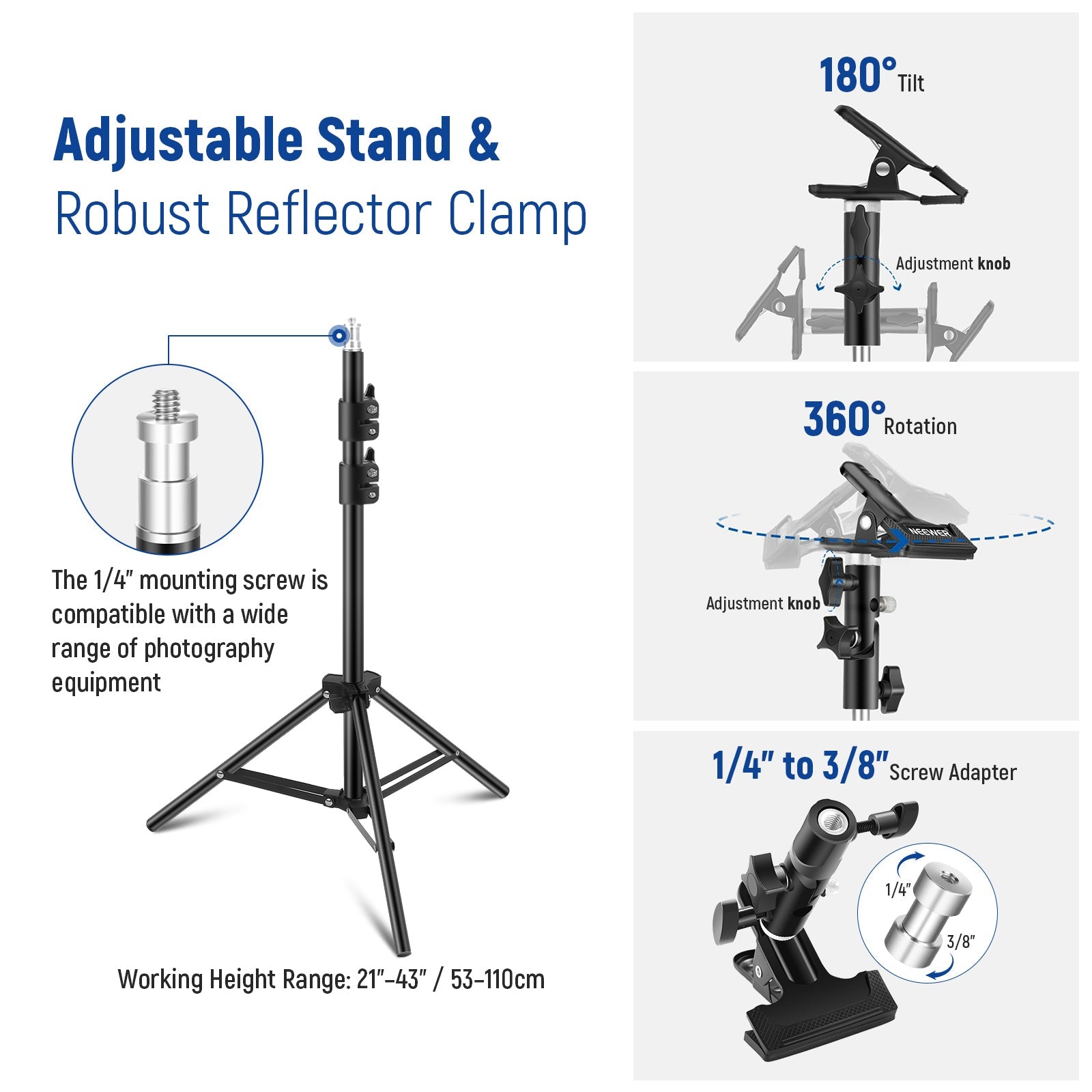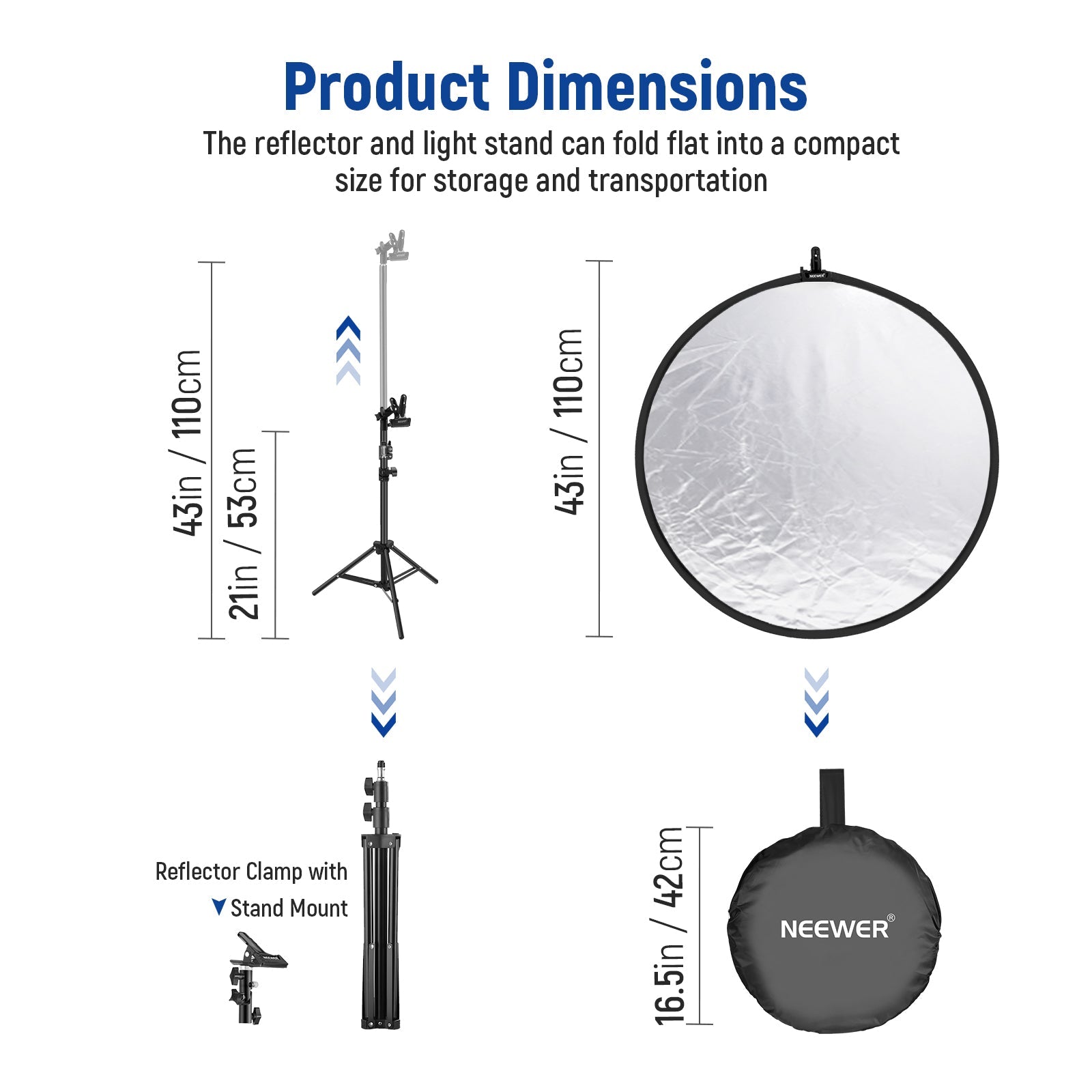 NEEWER 43”/110cm Lichtreflektor Set mit Metallklammer und Ständer