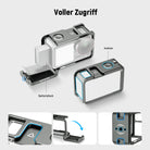 - Präziser Actionkamera Käfig- Der präzise konstruierte Käfig ermöglicht den vollen Zugriff auf alle Funktionen und verfügt über einen taktilen Auslöser, um die Steuerung zu verbessern. Da der USB C Anschluss frei bleibt, ist er kompatibel mit DJI Mic RX und anderen Peripheriegeräten. Müheloses Anbringen und Abnehmen über den Schiebeverschluss – keine Montage erforderlich