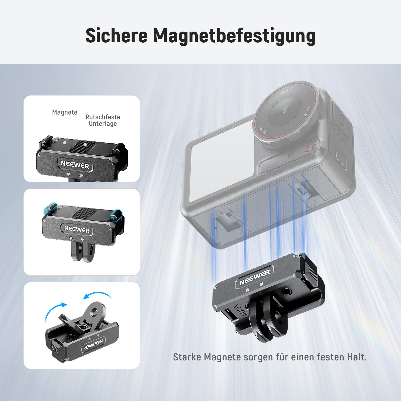 - Universeller Adapter für Actionkameras- Der Actionkamera Halterungsadapter ist mit Helm Kinnhalterungen, Fahrradlenkerhalterungen, Brustgurthalterungen und anderen Actionkamera Halterungen kompatibel und bleibt auch bei intensiven sportlichen Aktivitäten dank Magneten sicher an seinem Platz. Ein unverzichtbares Fotozubehör für Content Creator und eine essentielle Ausrüstung für Influencer