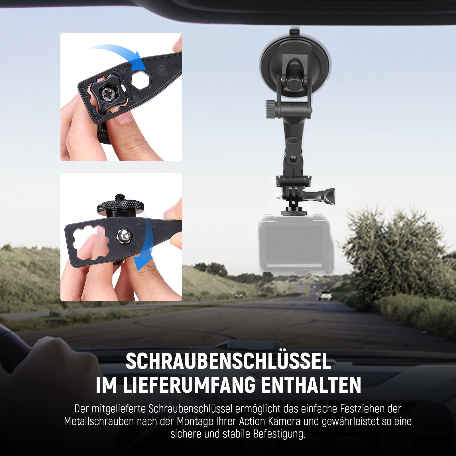 Inklusive Schraubenschlüssel- Der mitgelieferte Schraubenschlüssel ermöglicht ein einfaches Anziehen der Metallschrauben nach der Montage Ihrer Actionkamera und gewährleistet so eine sichere und stabile Einrichtung, da Content Creator und Influencer unbedingt eine Fotoausrüstung haben müssen