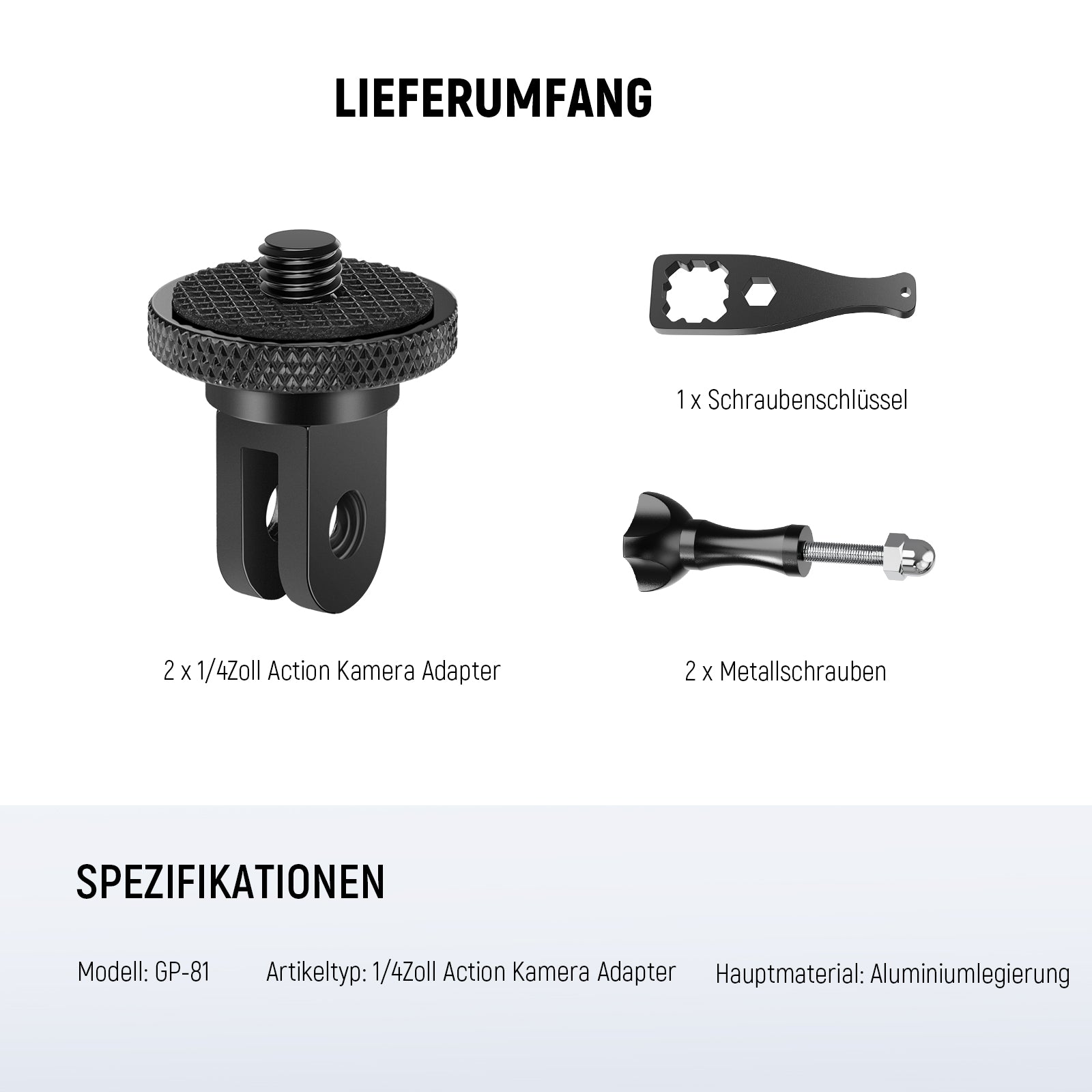 - 2 x 1/4" Aktionkamera Adapter
