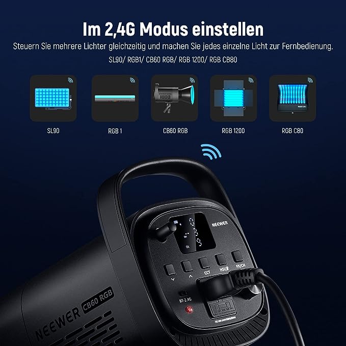 - Infinity App Steuerung und integriertes 2,4G- Verwenden Sie die NEEWER App,um die Einstellungen mehrerer Lichter gleichzeitig dynamisch anzupassen, bis zu 15m und in bis zu 8 Gruppen. Mit NEEWER Infinity Verbindungstechnologie können Sie bis zu 255 Geräte gleichzeitig über die App steuern. Diese Cob video Light sind kompatibel mit NEEWER SL90, RGB1, RGB C80 und RGB 1200, mit 2,4G System und 99 Kanälen.Stellen Sie sie auf denselben Kanal ein, um jedes Licht im Umkreis von 20 m fernzusteuern