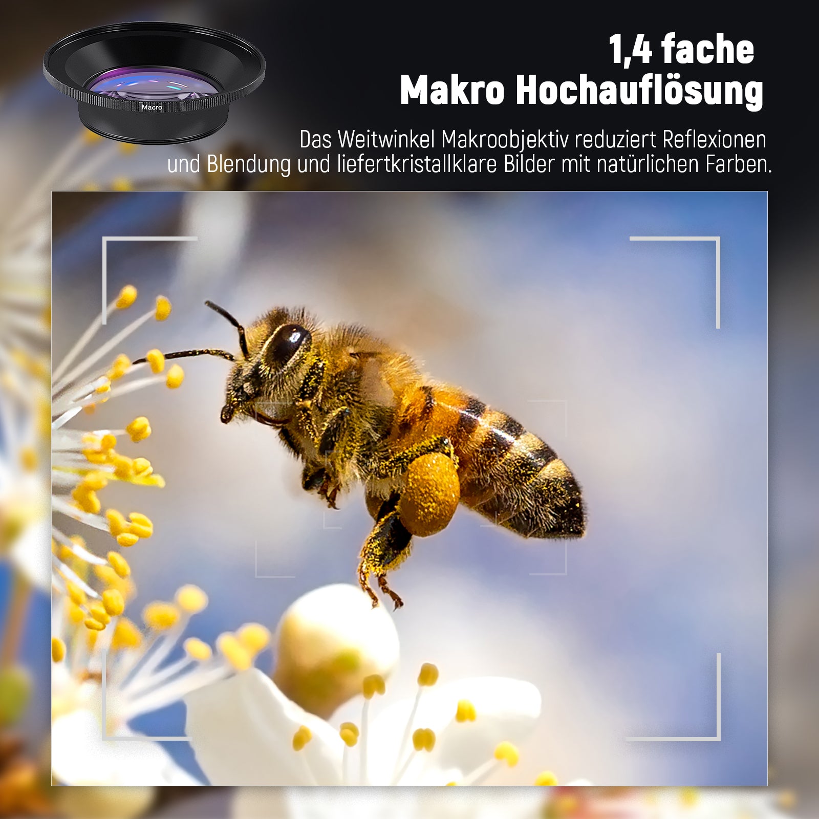 • 【Abnehmbares Makroobjektiv】 Mit dem 2 in 1 Design kann das LS-20 Objektiv sofort in ein Makroobjektiv umgewandelt werden, indem das Weitwinkelobjektiv entfernt wird. Das beeindruckende Makroobjektiv hilft bei der 1 bis 1,4 fachen Vergrößerung, basierend auf dem Vergrößerungsverhältnis Ihres Objektivs. Verwendungs Hinweis: Drehen Sie das Weitwinkelobjektiv zum Entfernen gegen den Uhrzeigersinn