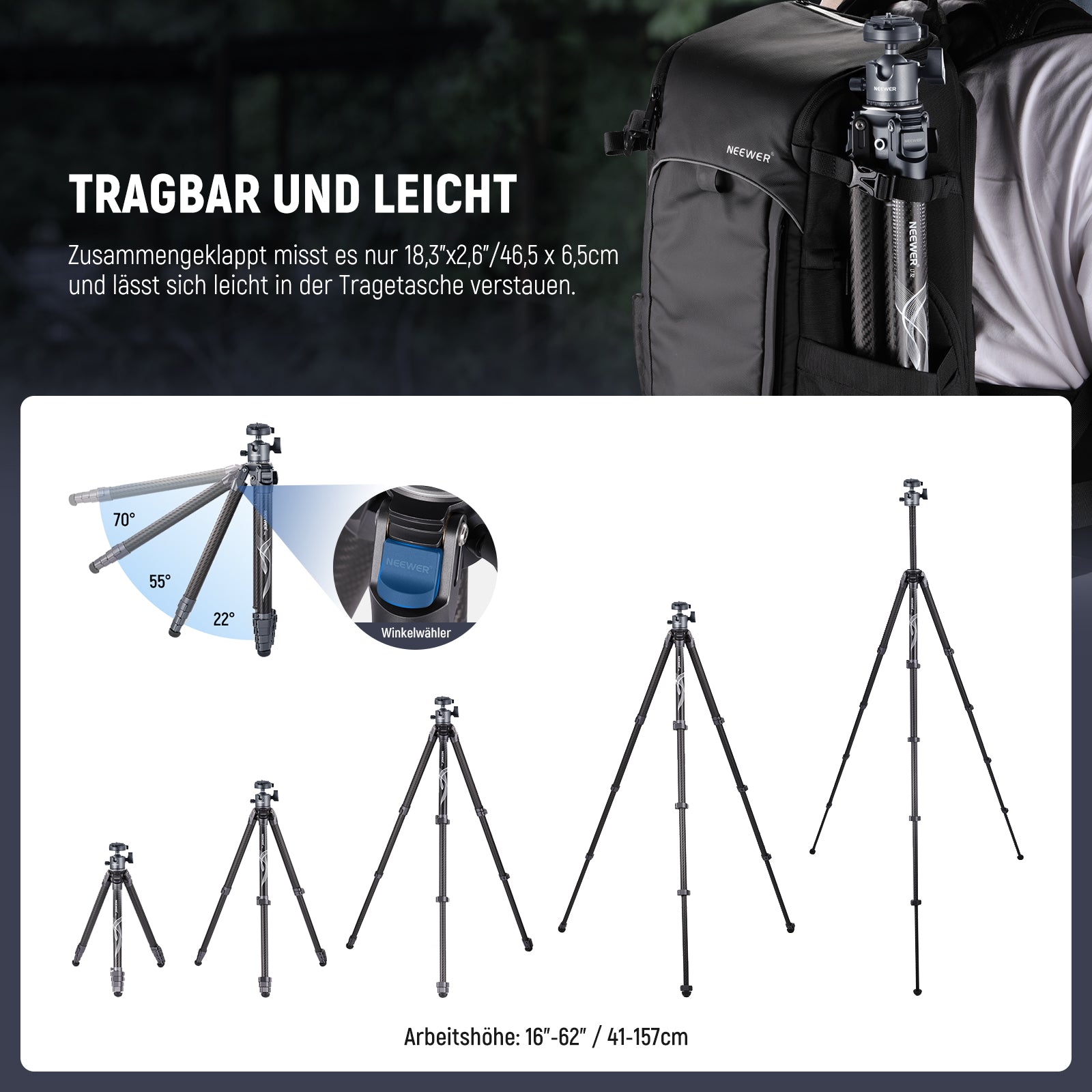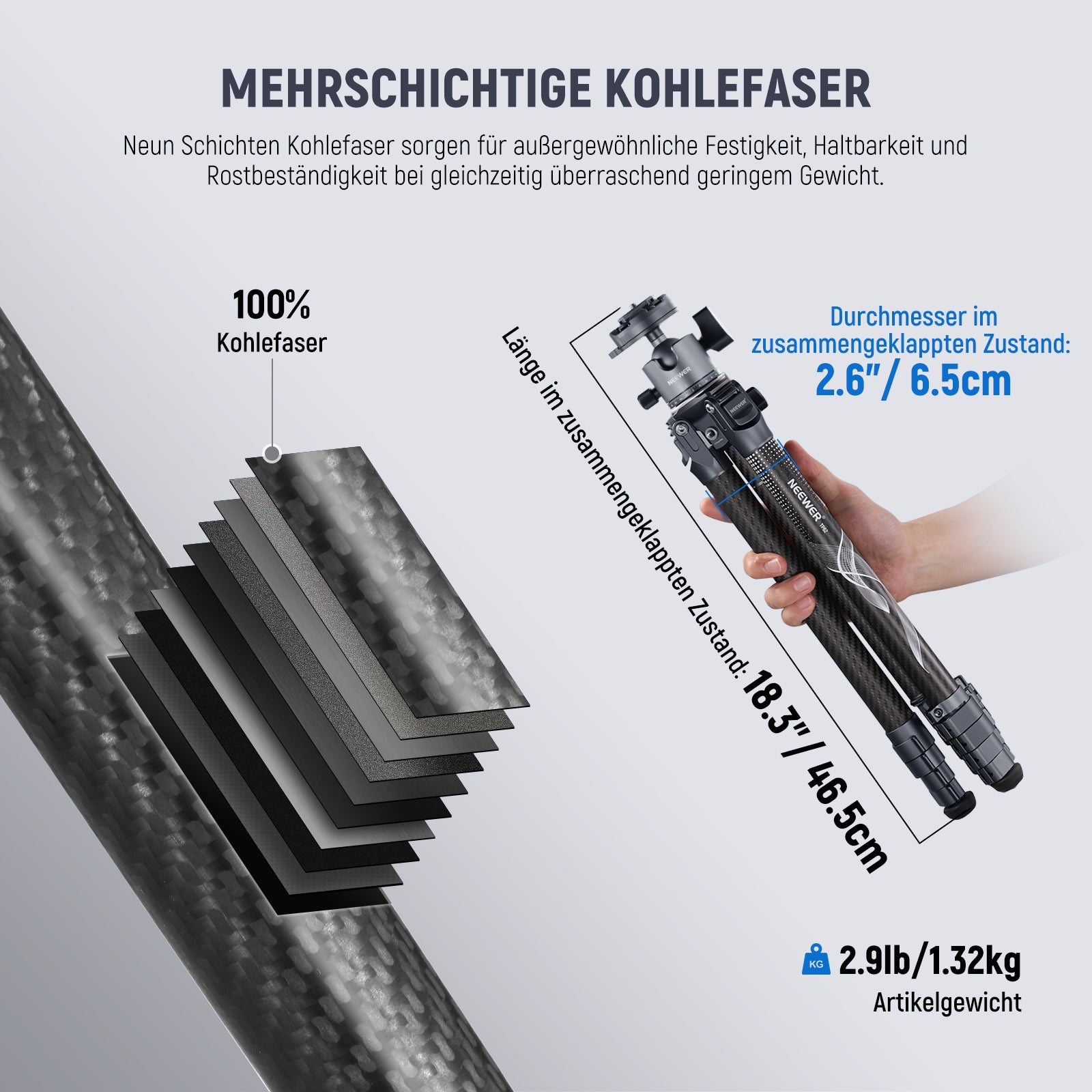 NEEWER LT34 62" 157cm Reisestativ aus Carbonfaser