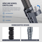 - Hauptmerkmale: Schnellverschluss & flexible Achse