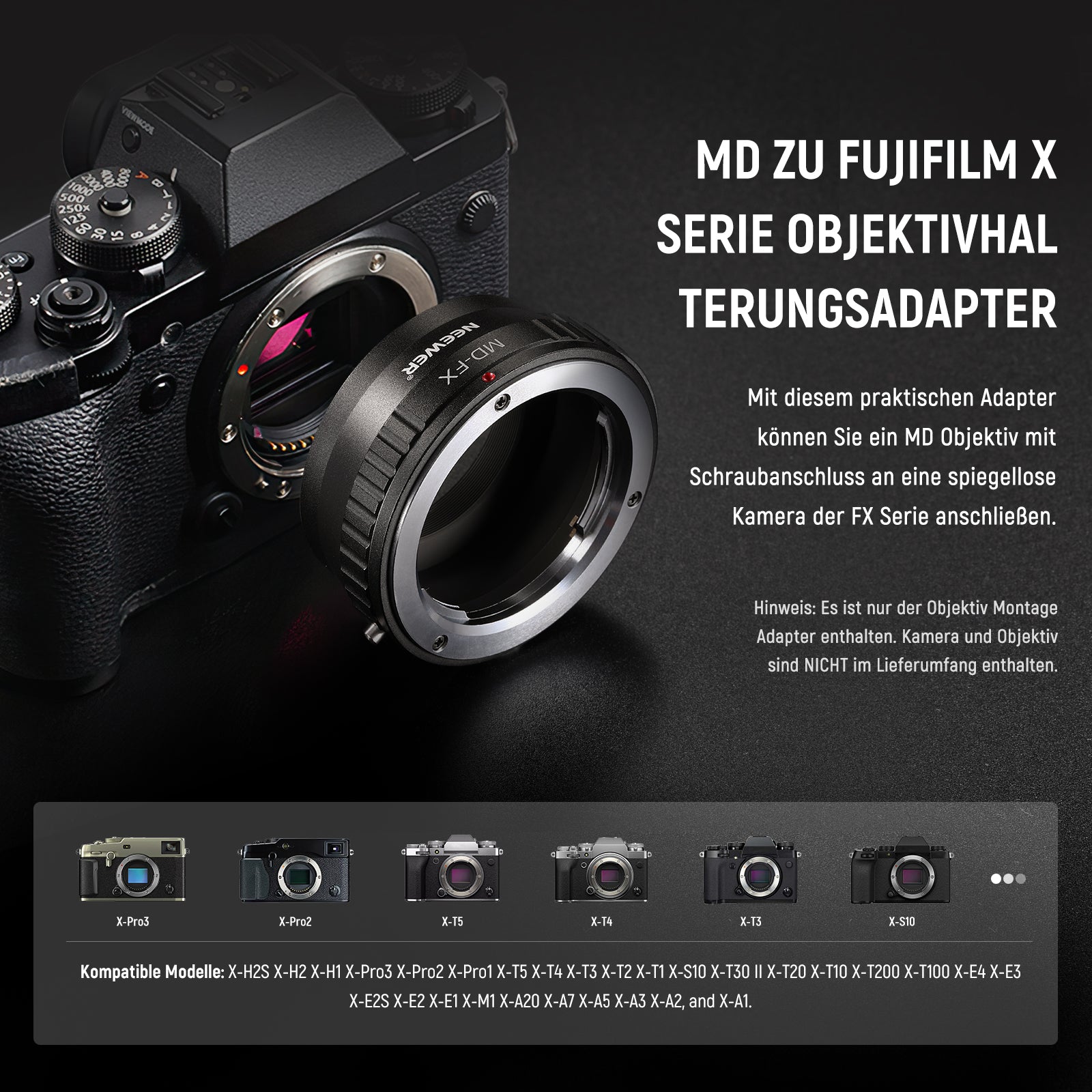 • 【Lieferumfang】 1 x Objektiv Montageadapter für MD/MC Objektive und X Montage Kameras