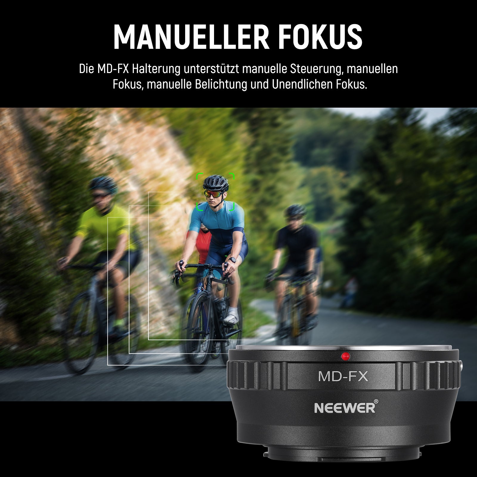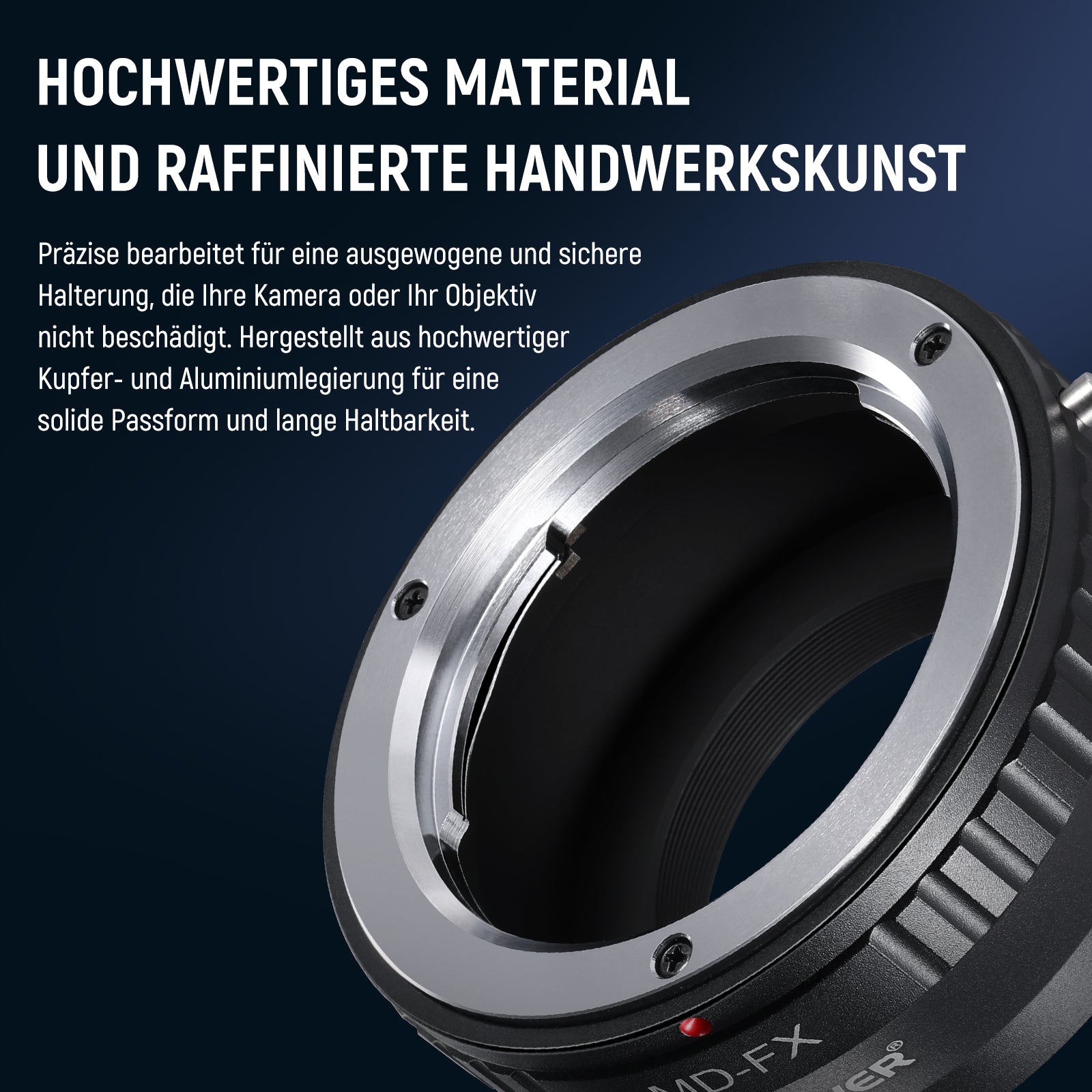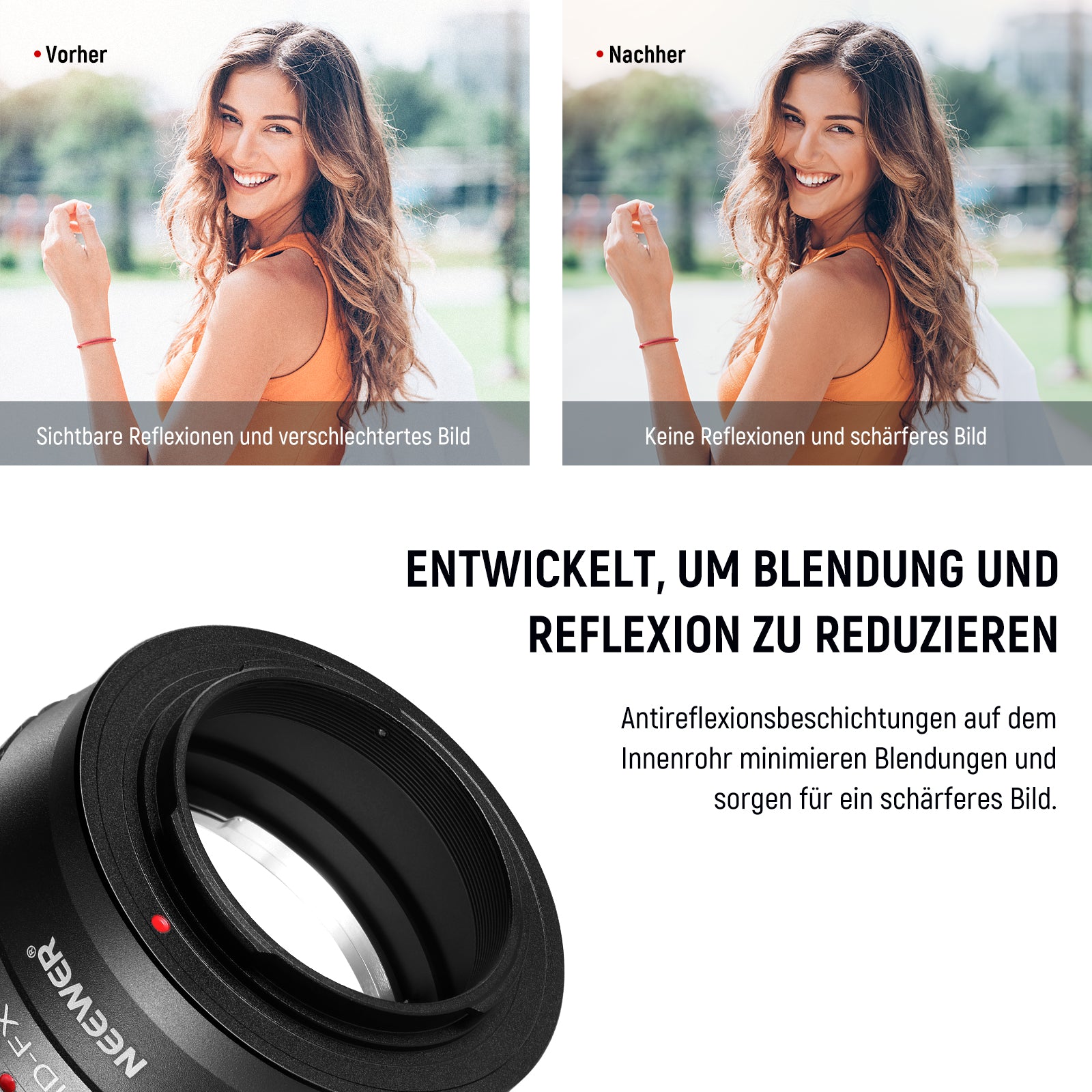 • 【Nur manueller Modus】 Keine elektrischen Kontakte. Der Adapter unterstützt nur den manuellen Modus Ihrer Kamera, einschließlich stufenloser manueller Fokussierung und manueller Einstellung der Blende