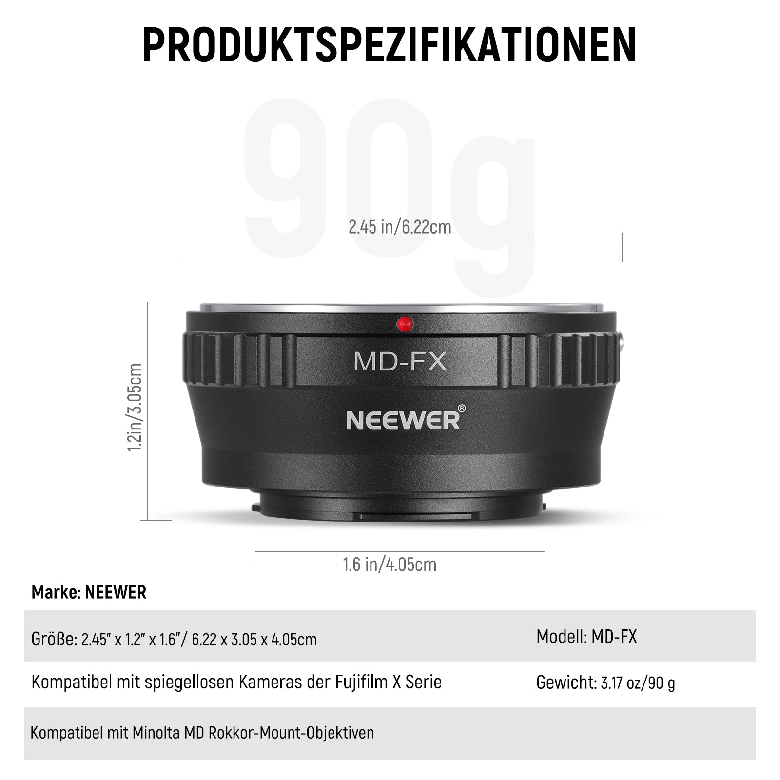 NEEWER MD-FX Adapter Minolta MD auf Fuji X