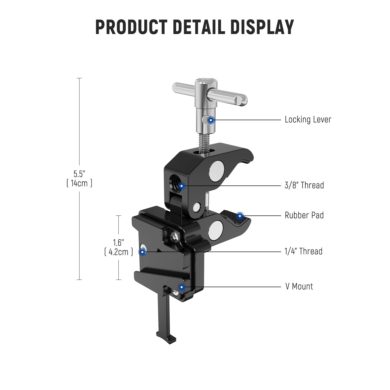 - 【Breitere Mundöffnung】 Mit einer maximalen Öffnung von 2" (50mm) kann die V förmige Klemme an flachen und gekrümmten Oberflächen oder an einer Stange, einem Rohr, einem Lichtständer oder einem C Ständer mit unglaublicher Stärke befestigt werden
