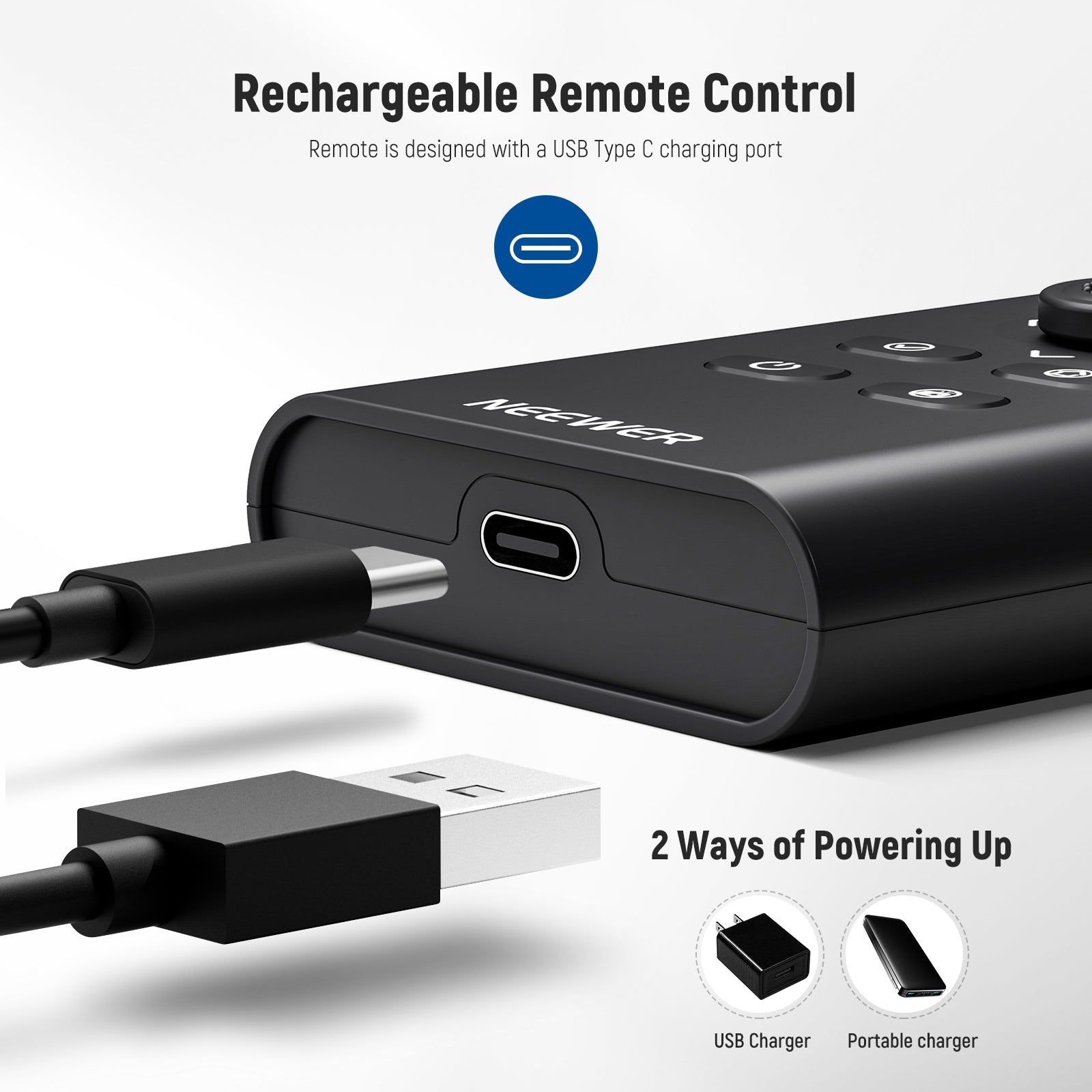 - 【Wiederaufladbare Fernbedienung】 Im Gegensatz zu herkömmlichen Fernbedienungen, die mit Einwegbatterien betrieben werden, ist diese verbesserte Slider Fernbedienung mit einem USB Typ C Ladeanschluss ausgestattet. Laden Sie die Fernbedienung schnell auf, indem Sie sie an ein Wandladegerät oder ein tragbares Ladegerät mit DC5V/1A Ausgang anschließen