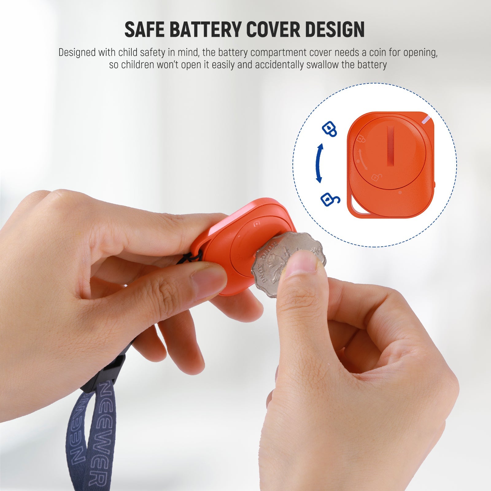 - 【Sicheres Design der Batterieabdeckung】 Die Batteriefachabdeckung wurde unter Berücksichtigung der Kindersicherheit entwickelt und benötigt eine Münze zum Öffnen, damit Kinder sie nicht leicht öffnen und die Batterie versehentlich verschlucken können. Die CR2032 Batterie benötigt einen geringen Stromverbrauch und bietet Ihnen eine längere Batterielebensdauer