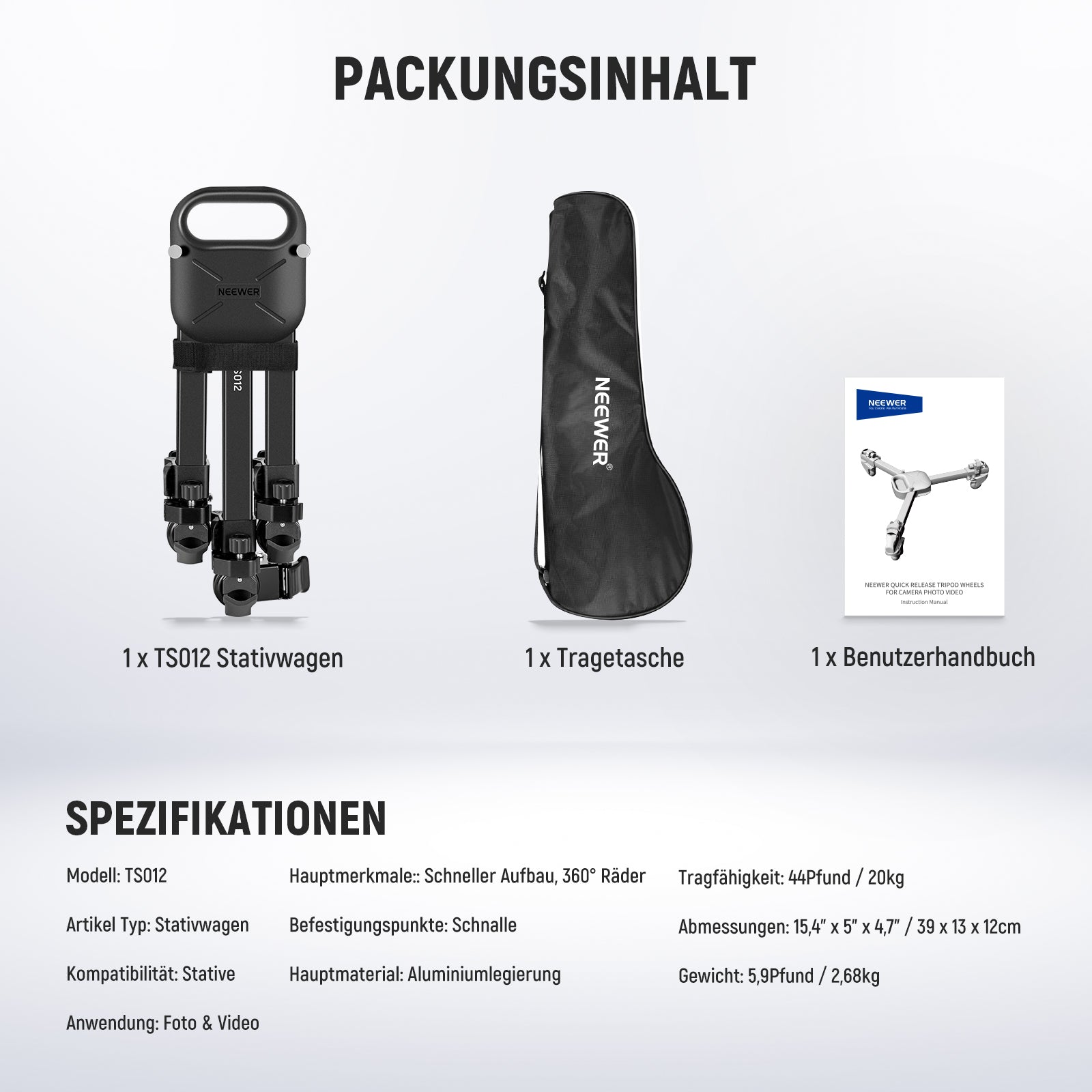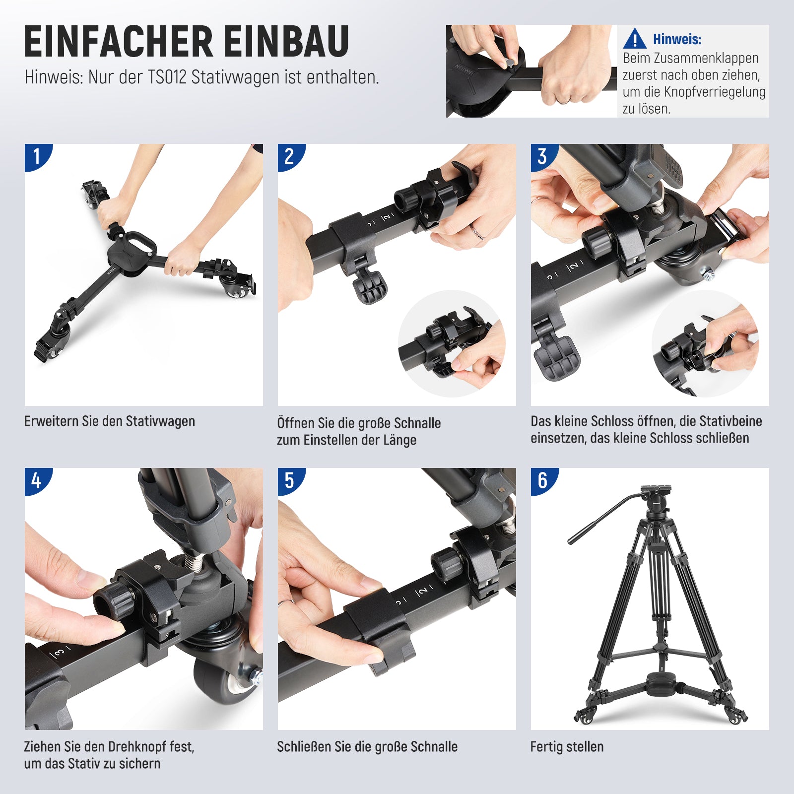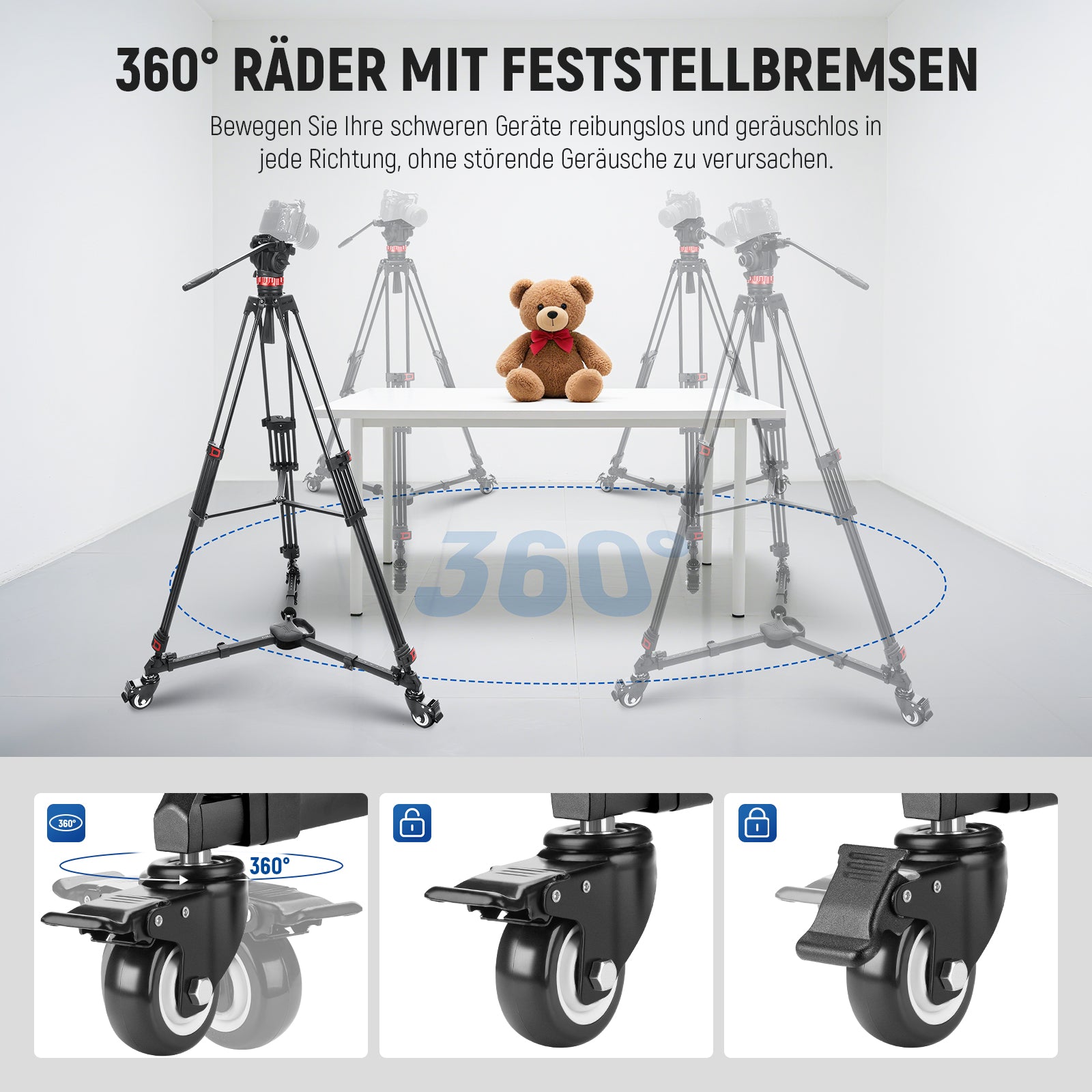 - Hochbelastbarer Kamerawagen für Kamerastativ- Der aus einer Aluminiumlegierung gefertigte Stativwagen TS012 mit Rädern trägt bis zu 20kg und bietet Stabilität, Mobilität und Komfort für Ihre Camera Tripod oder andere montierte Geräte, vielseitig einsetzbar als rollender oder beweglicher Stativständer für Fotografie, Filmen, Videoaufnahmen usw
