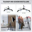 - Teleskop und Schiebeverstellung- Der Video Stativ Dolly verfügt über teleskopierbare Beine, die von 28cm bis 44,5cm ausgezogen werden können, wodurch er für verschiedene Stativgrößen und Öffnungswinkel geeignet ist und sich besser an beengte Studioräume oder weitläufige Außenbereiche anpassen lässt
