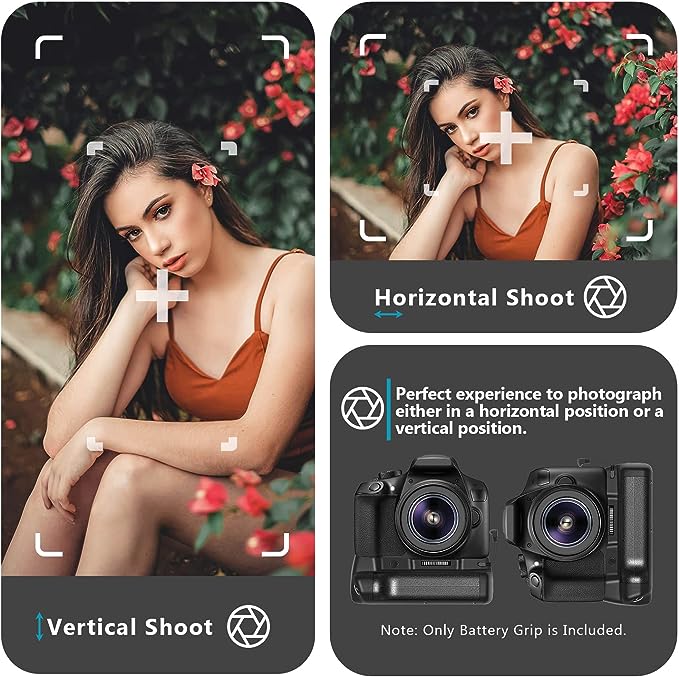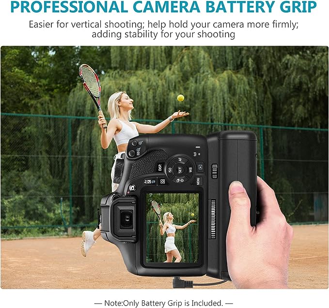 - Vertikaler Akkugriff: Für Canon EOS 1100D / 1200D / Rebel T3 / Rebel T5 / Rebel T6; bietet Platz für einen zusätzlichen Akku, verdoppelt effektiv Ihre Aufnahmedauer, damit Ihnen nie mehr der Strom ausgeht.