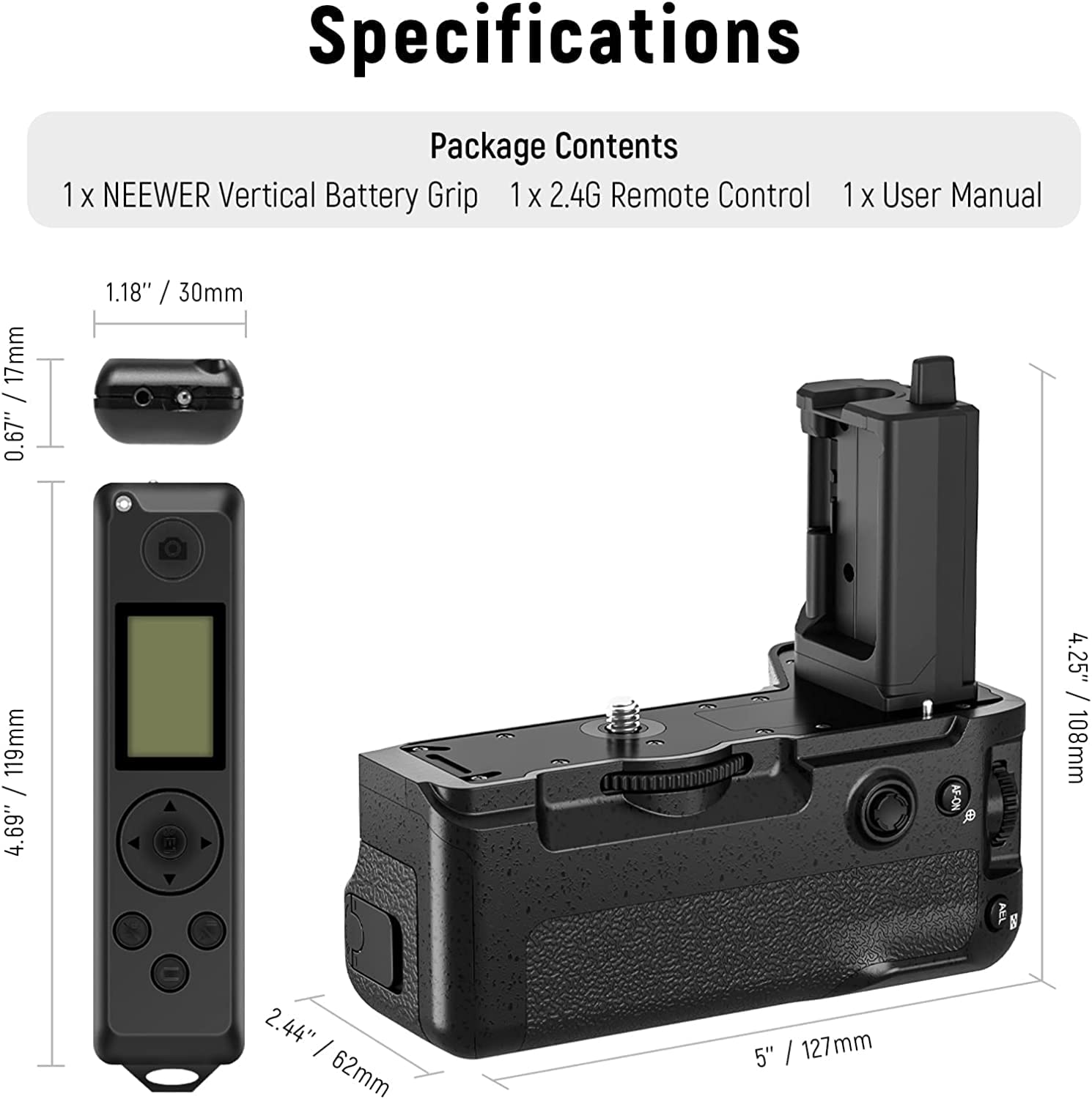NEEWER VG-C4EM Vertikaler Batteriegriff mit 2,4G 131ft/40m LCD Fernbedienung