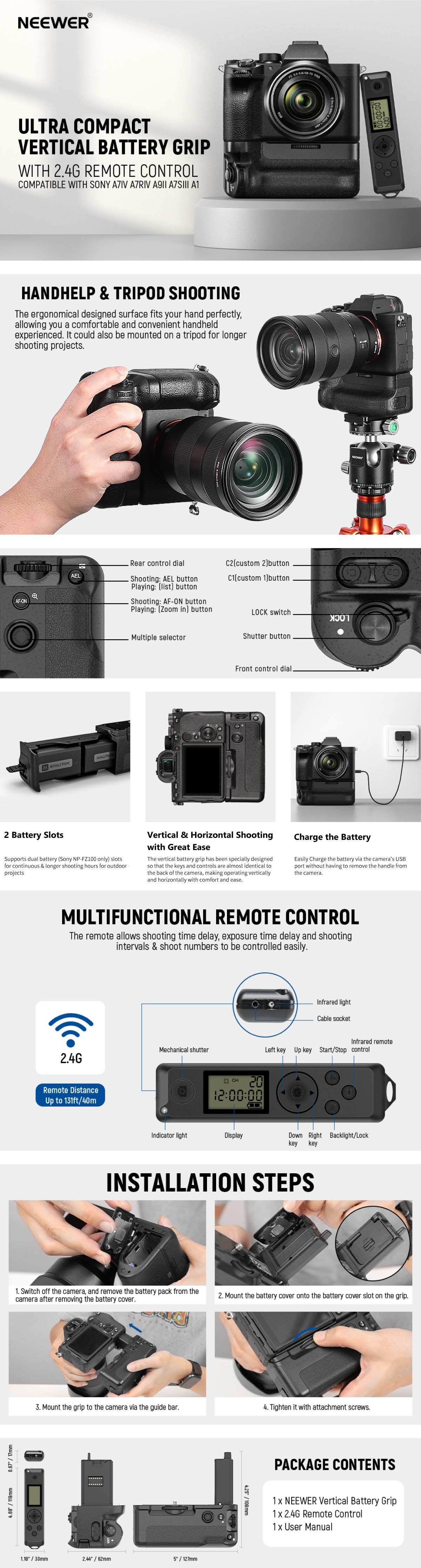 - 【Leicht und tragbar】 Der Batteriegriff wiegt 240g und die Fernbedienung nur 30g. Einfach zu bedienen und leicht zu transportieren
