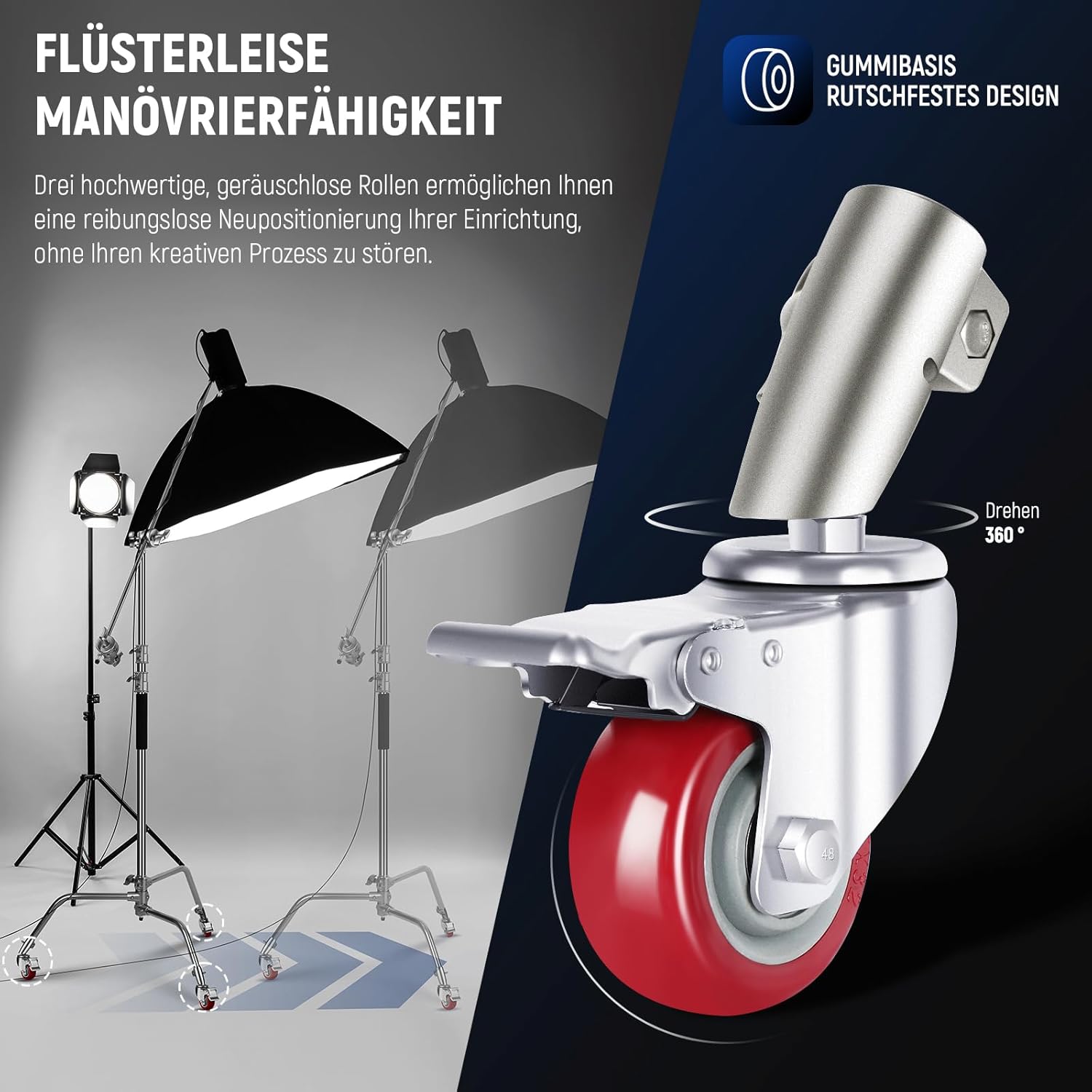 - 【Flüsterleise Manövrierfähigkeit】Navigieren Sie mühelos durch Ihr Studio mit den leisen Rollen. Drei hochwertige, geräuschlose Rollen ermöglichen Ihnen eine reibungslose Neupositionierung Ihrer Einrichtung, ohne Ihren kreativen Prozess zu stören