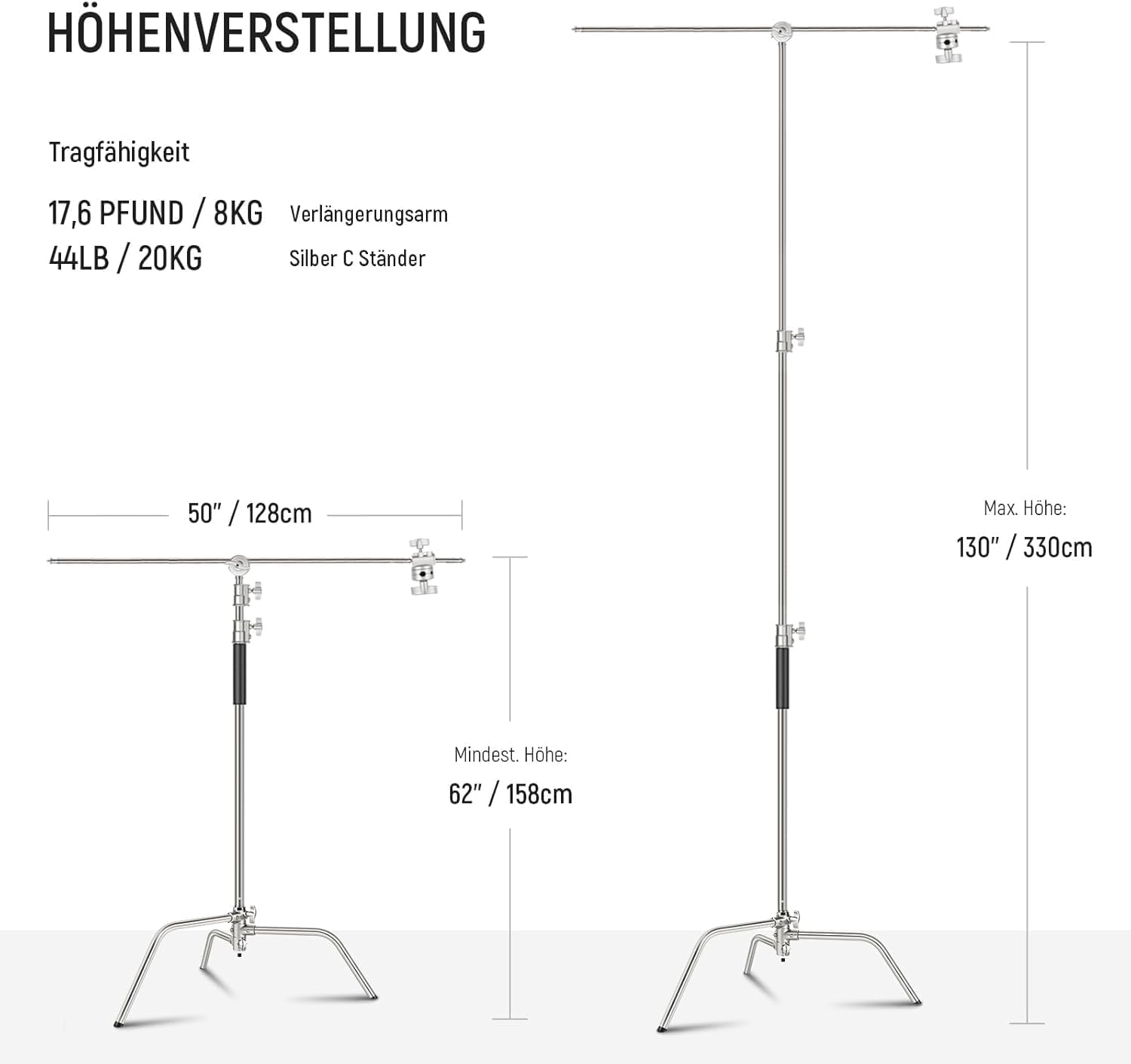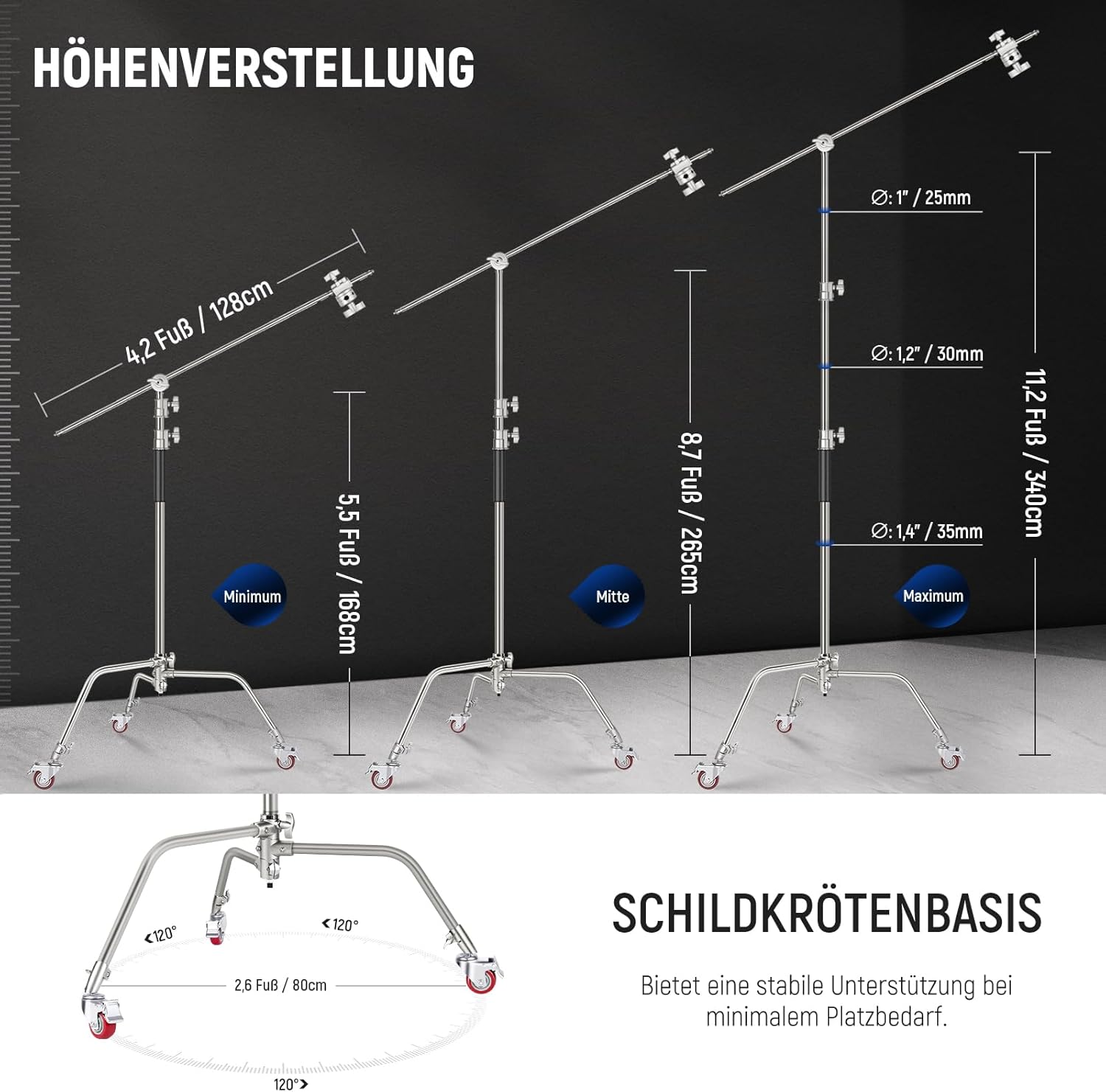NEEWER 330cm/340cm Pro Edelstahl C-Ständer