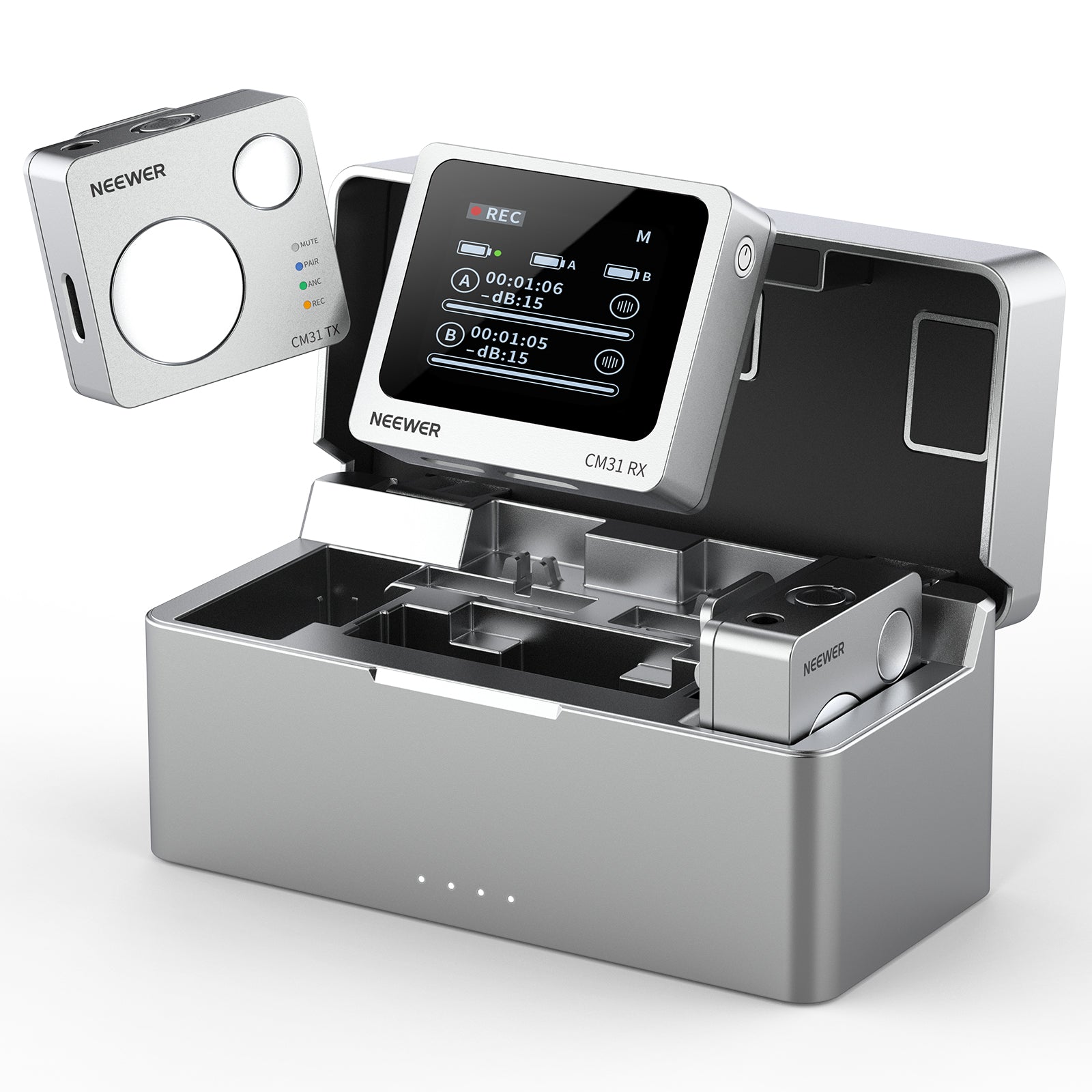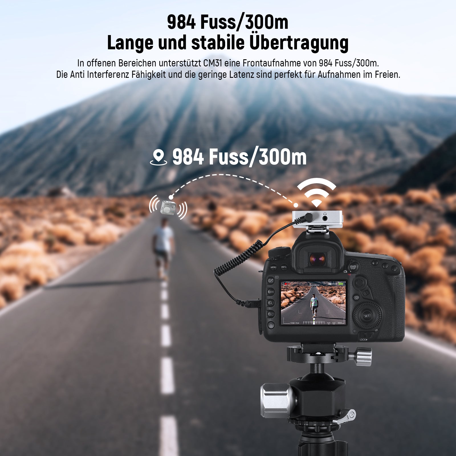 - 8GB Speicher und 250m Übertragung- Der Sender funktioniert dank seines internen Speichers von 8GB als Rekorder und speichert WAV Dateien jeweils 60 Minuten oder insgesamt 14,5 Stunden. In offenen Bereichen unterstützt CM31 eine Aufnahme von 820Fuß/250m vorne und 164Fuß/50m hinten. Die Fähigkeit, Interferenzen zu widerstehen, und die geringe Latenz sind ideal für Aufnahmen im Freien