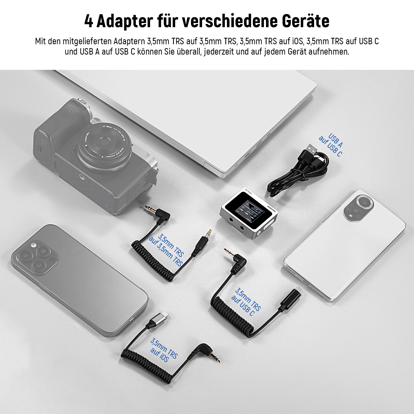 - Plug & Play Lavaliermikrofon- Dieses drahtlose Plug & Play Mikrofonsystem benötigt keine App, um zu funktionieren, und verfügt über das gesamte Zubehör für die Verwendung mit Telefonen und Computern. Mitgelieferte OTG und Audiokabel machen den Empfänger kompatibel mit iPhone 16 15 14 13 Pro Max, iPad, Android Telefonen, Laptops und Action Kameras. (Kompatibel mit DJI Osmo; nicht kompatibel mit GoPro; nicht kompatibel mit Insta360)