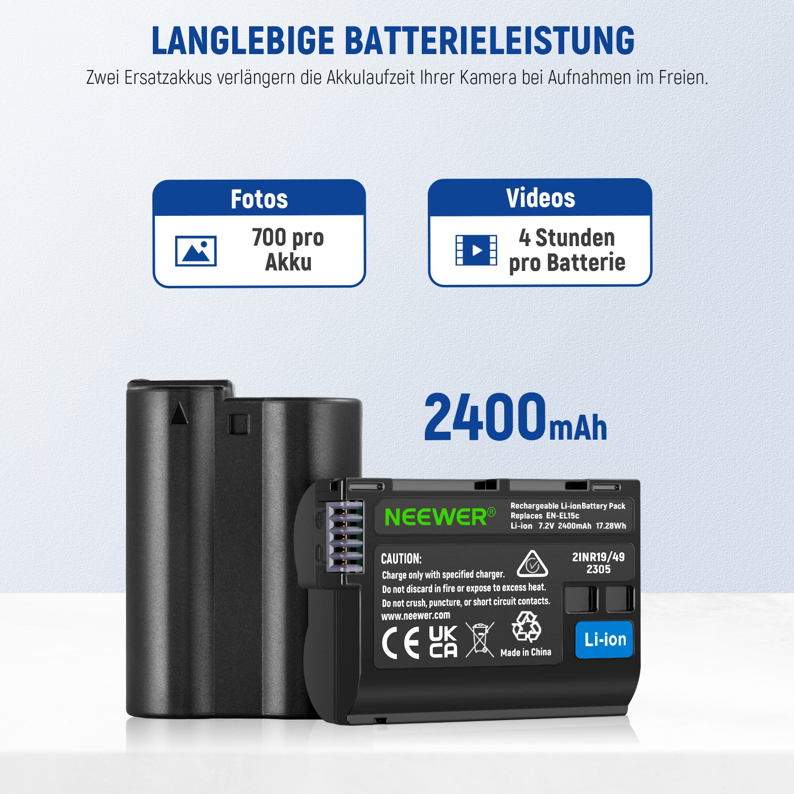 NEEWER EN-EL15c 2400mAh Ersatzakku und USB Ladegerät Set