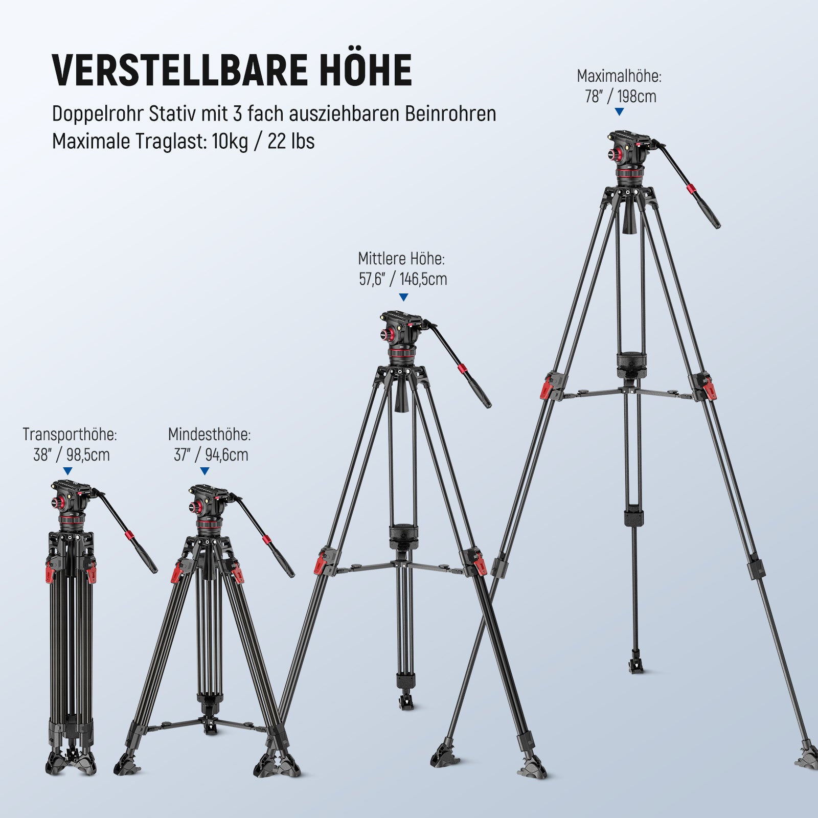 - Hauptmerkmale: Fluidkopf, Schnellwechselplatte