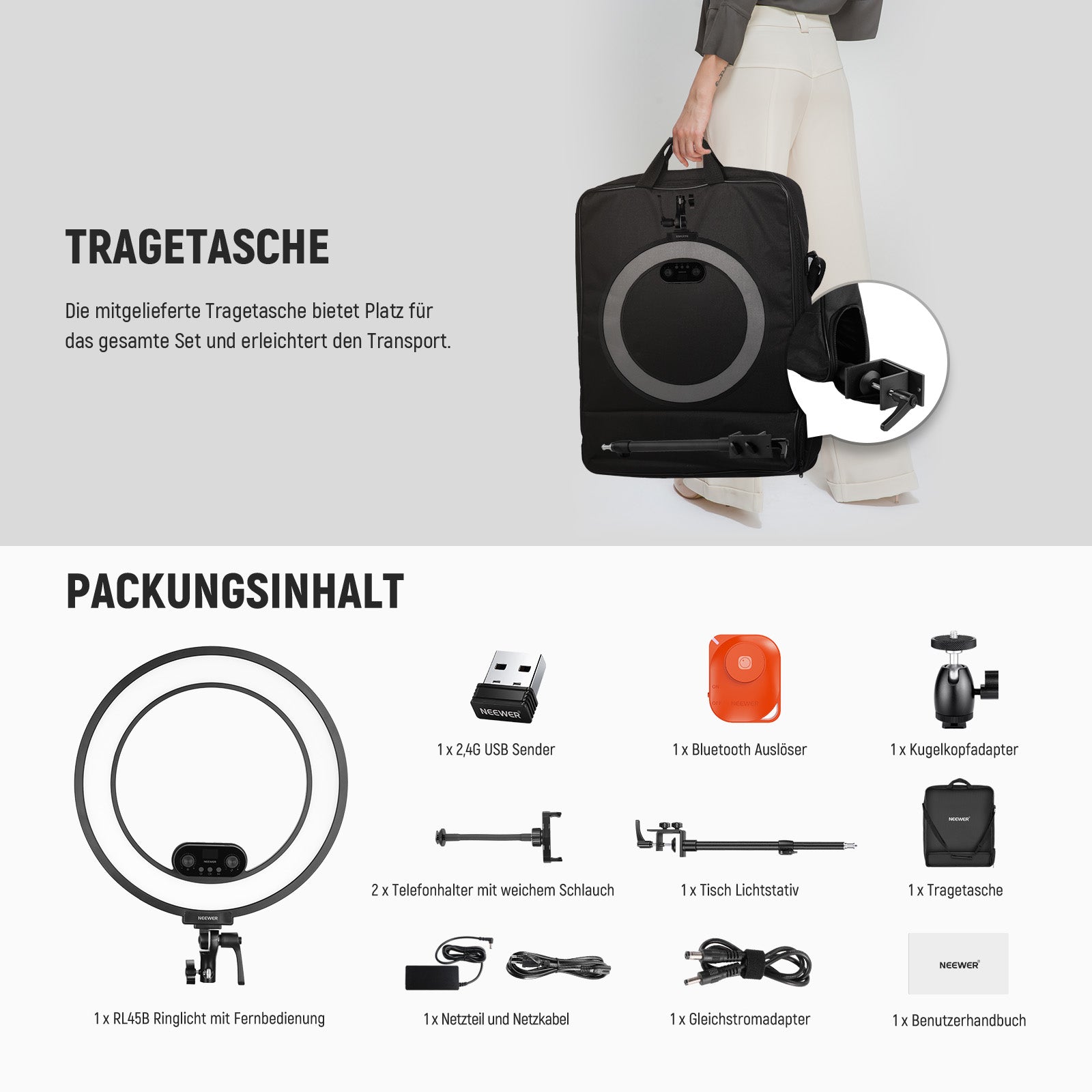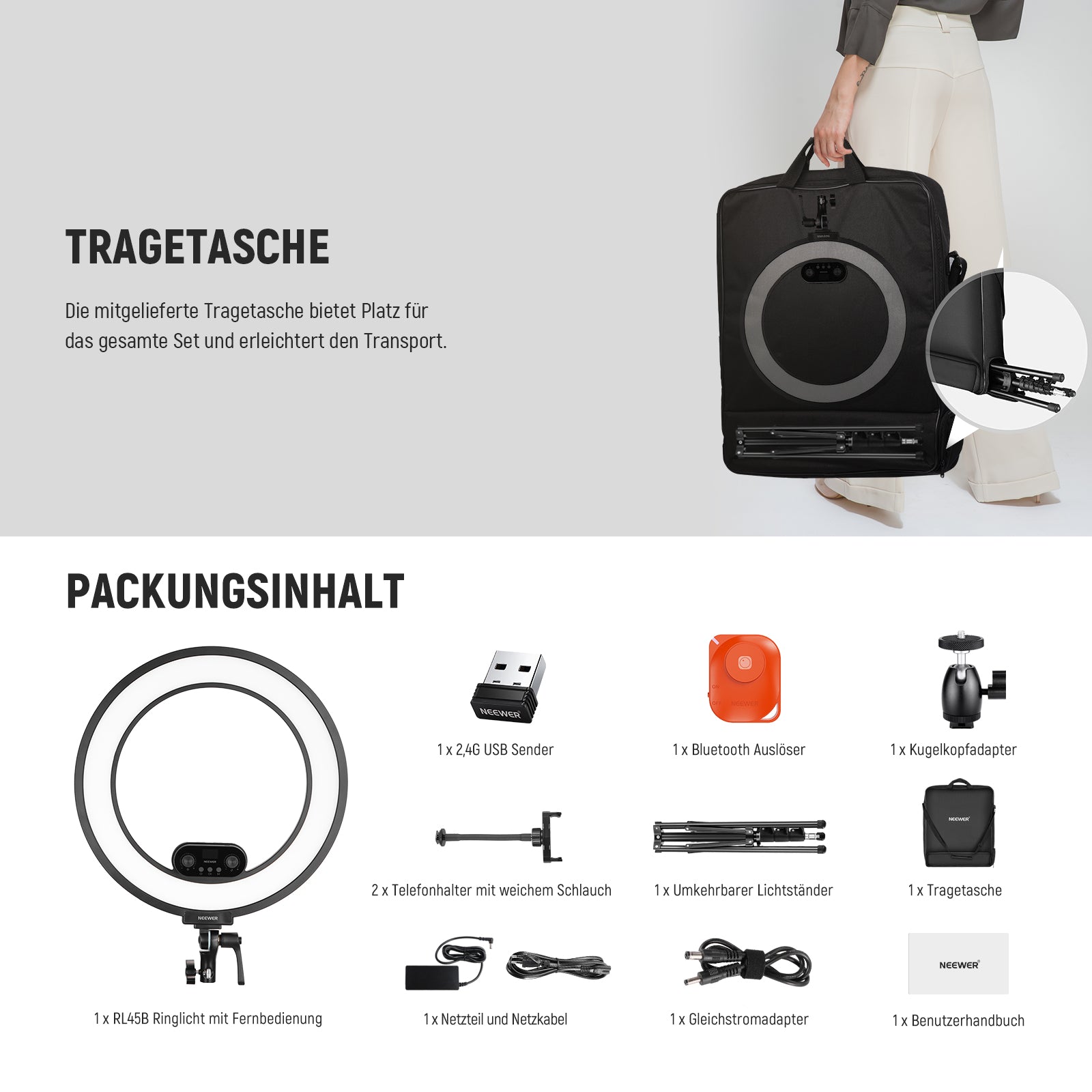 NEEWER RL45B 18" Ringlicht Set mit Randbeleuchtung
