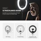 - 【18" Randbeleuchtet schlank LED Ringlampe Set】RL45B Ring Licht ist ein kantenbeleuchtet LED Ring Light mit schlankem Design. Mit 288 Premium LEDs verfügt es über einen CRI 97+ für eine präzise Farbwiedergabe und eine max. Leistung von 45W bei 3300Lux/0,5m Beleuchtungsstärke. Die kreisförmige Lichtform ist weich und gleichmäßig verteilt und lässt Ihre Augen hervorstechen. Es verfügt über einen 180° Stativmontageadapter und ein umkehrbares Lichtstativ für eine flexible Lichtpositionierung