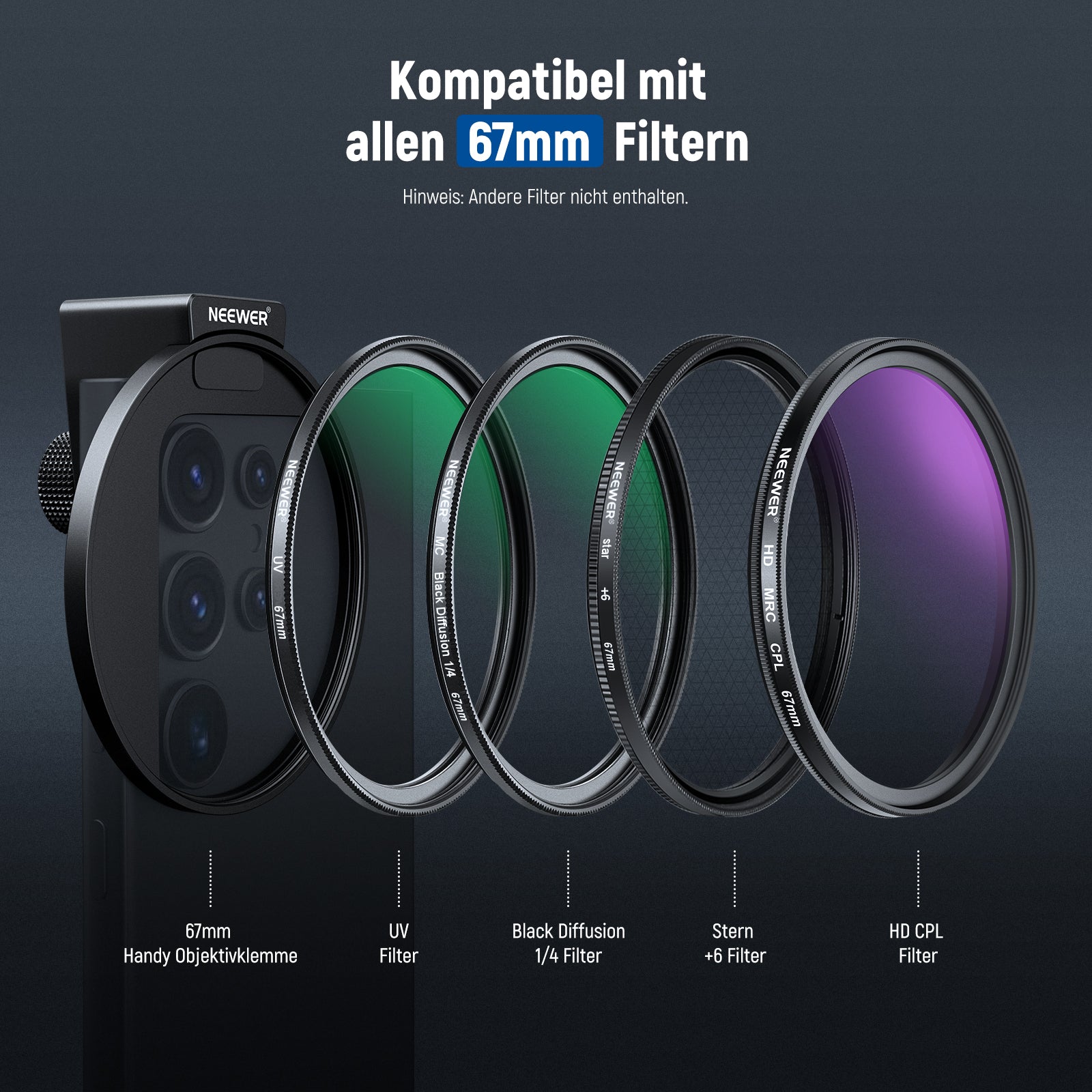 NEEWER FL-78 67mm HD CPL Filter für Telefon, und Cold Shoe Handy Klammer