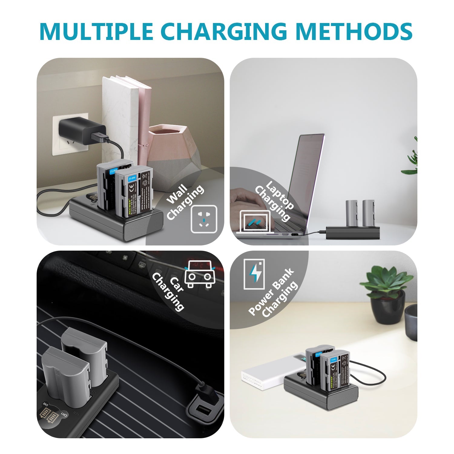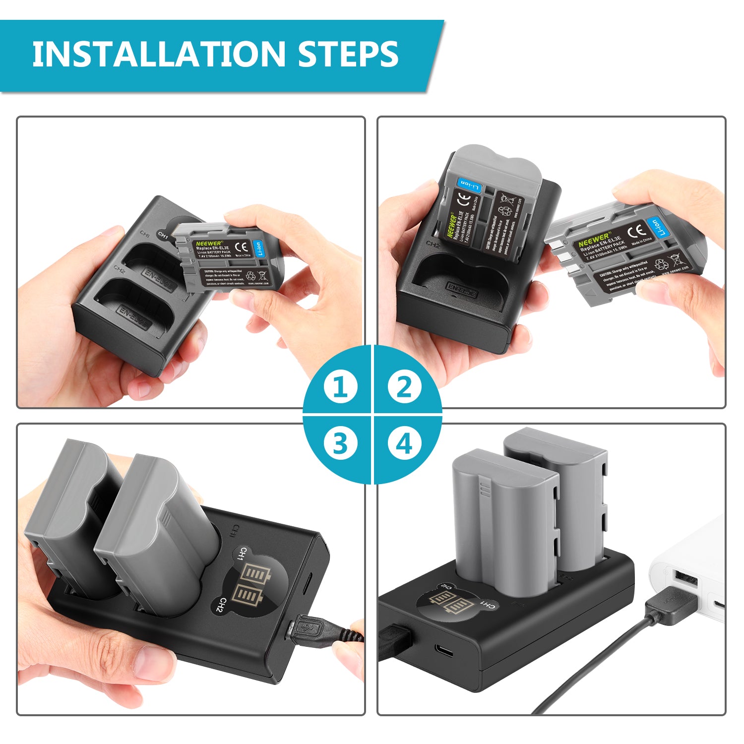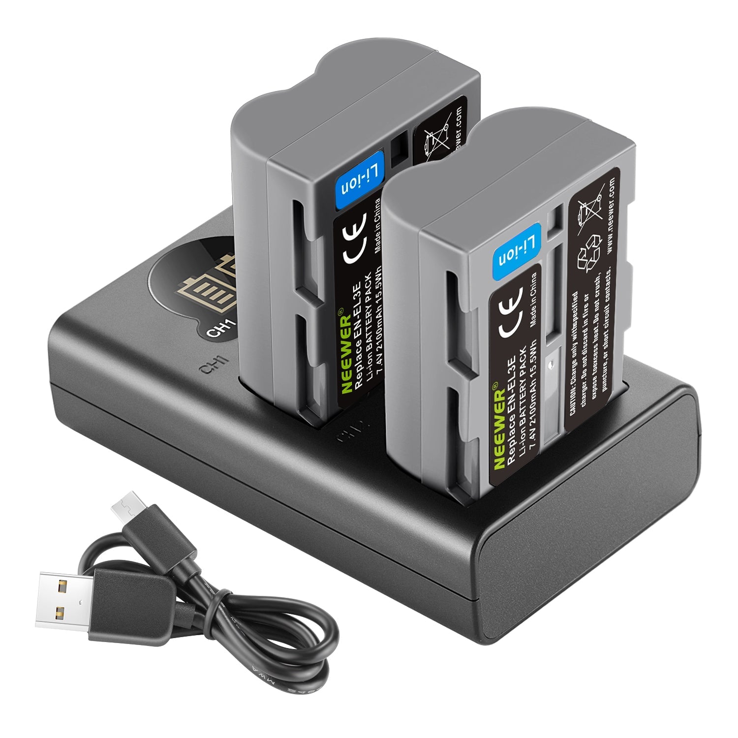 NEEWER 2er Pack EN-EL3E 2100mAh Ersatzakku Ladegerät Set für Nikon