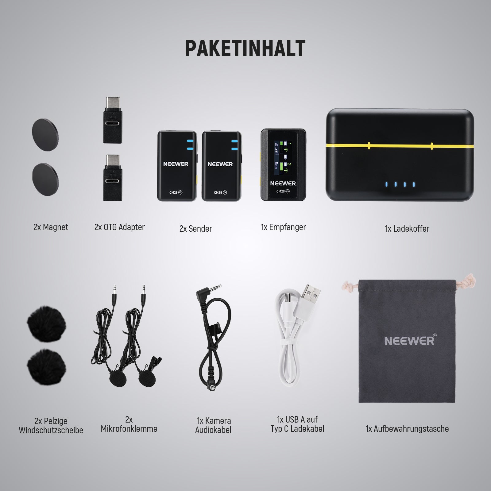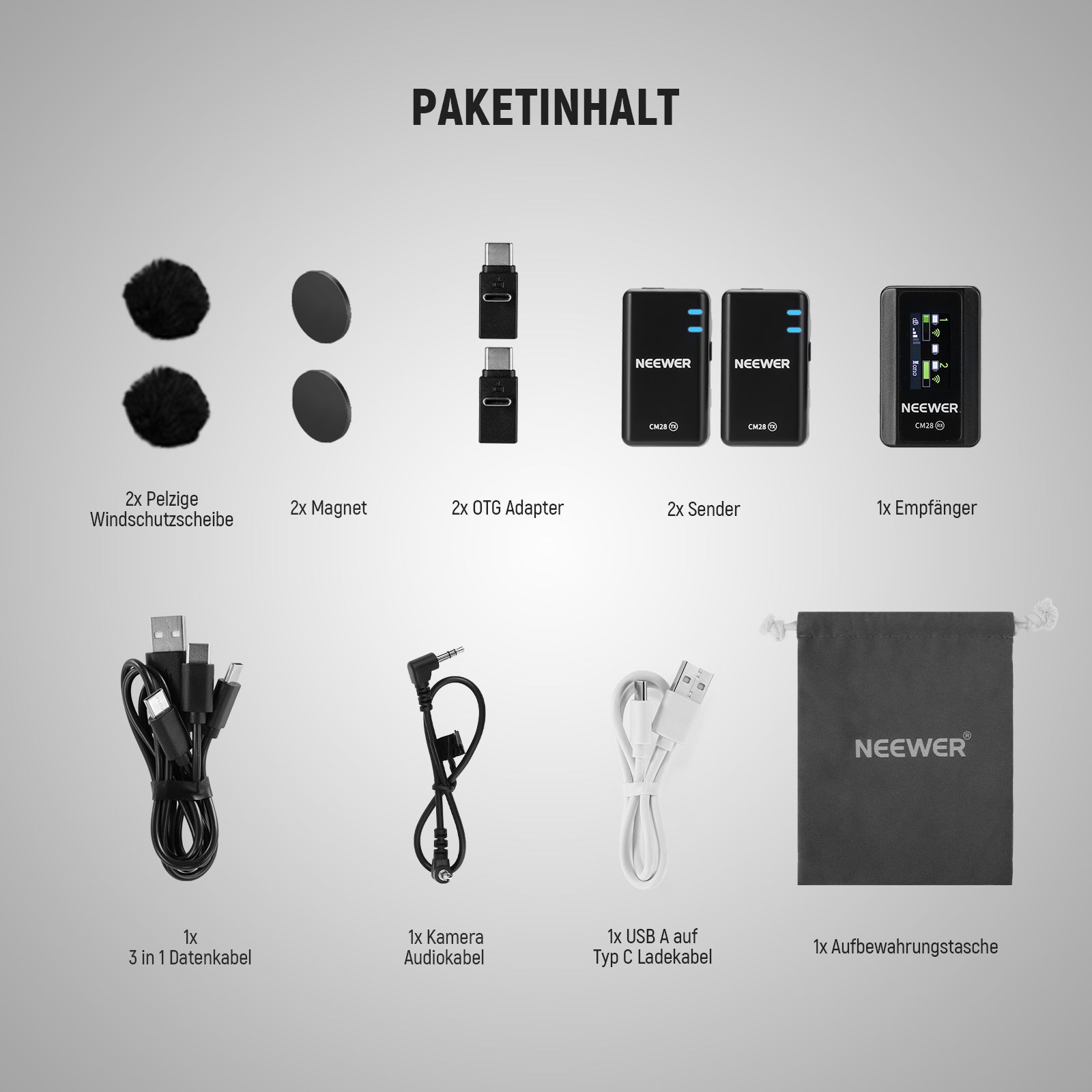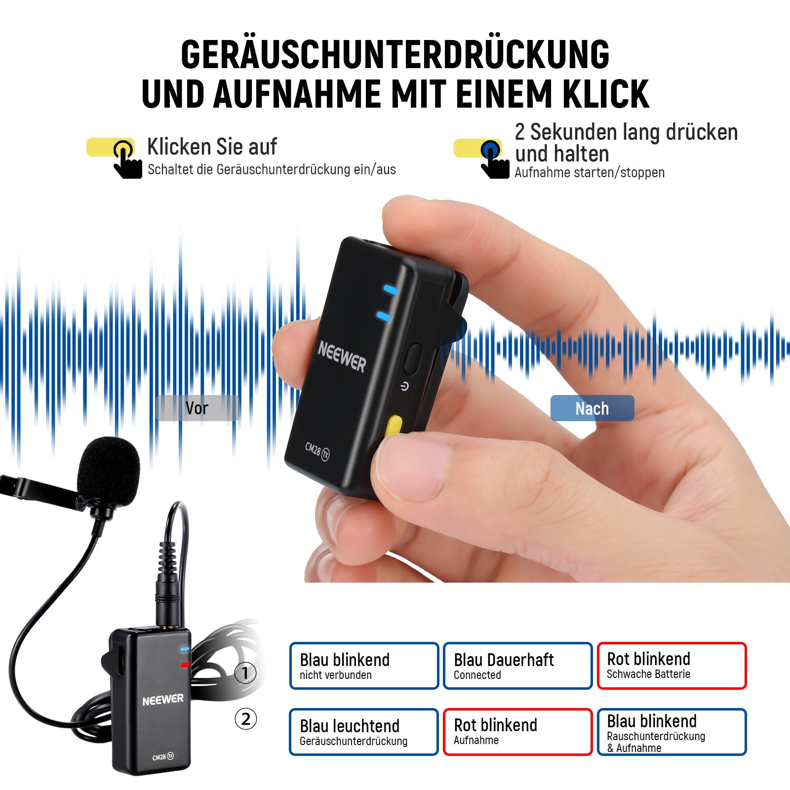 NEEWER CM28 Professionelles Kabelloses Funk Lavalier Mikrofon