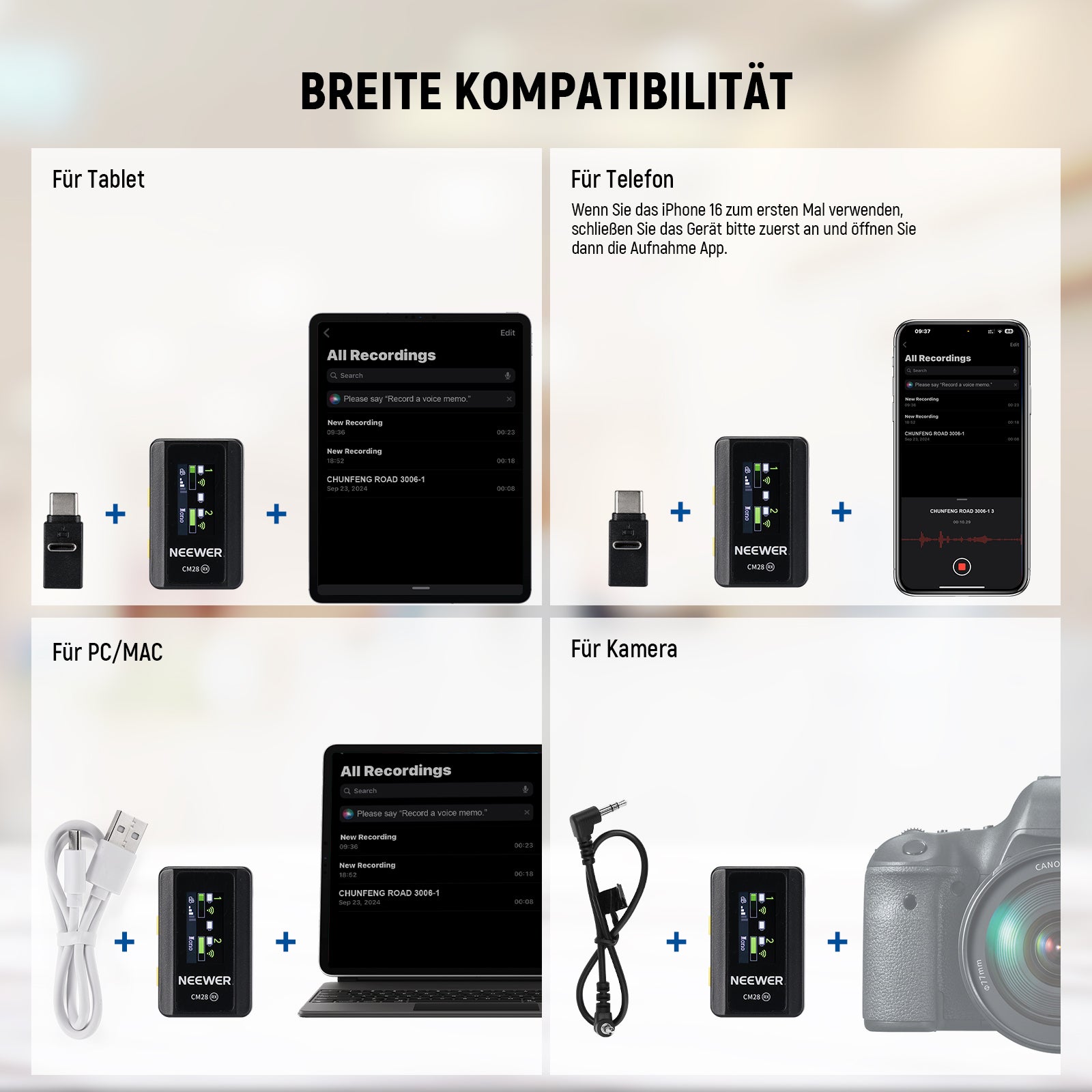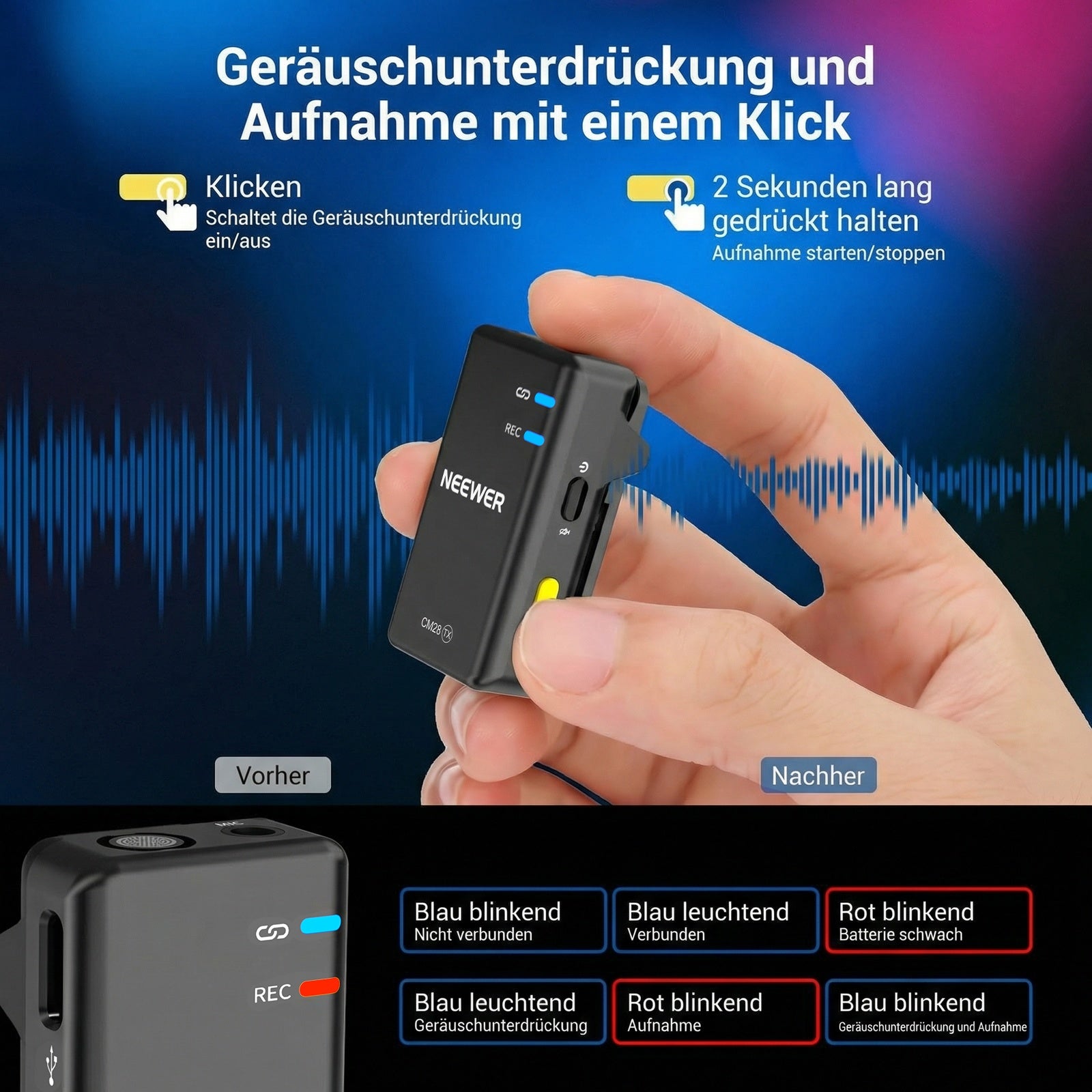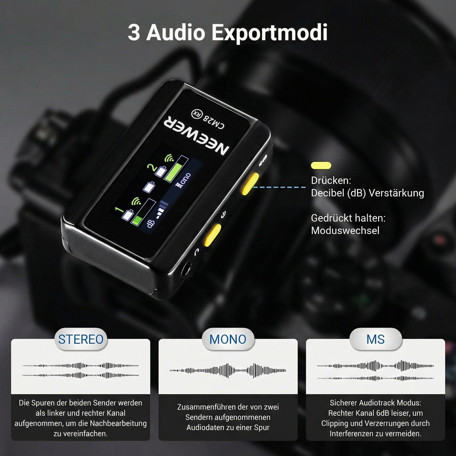NEEWER CM28 Professionelles Kabelloses Funk Lavalier Mikrofon