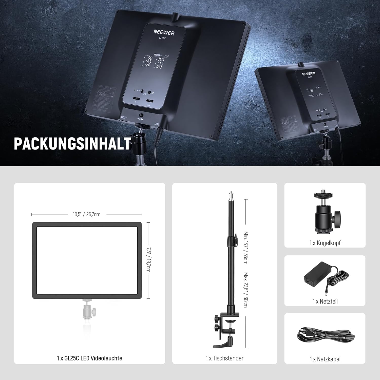 - 1 x GL25C LED-Videoleuchte