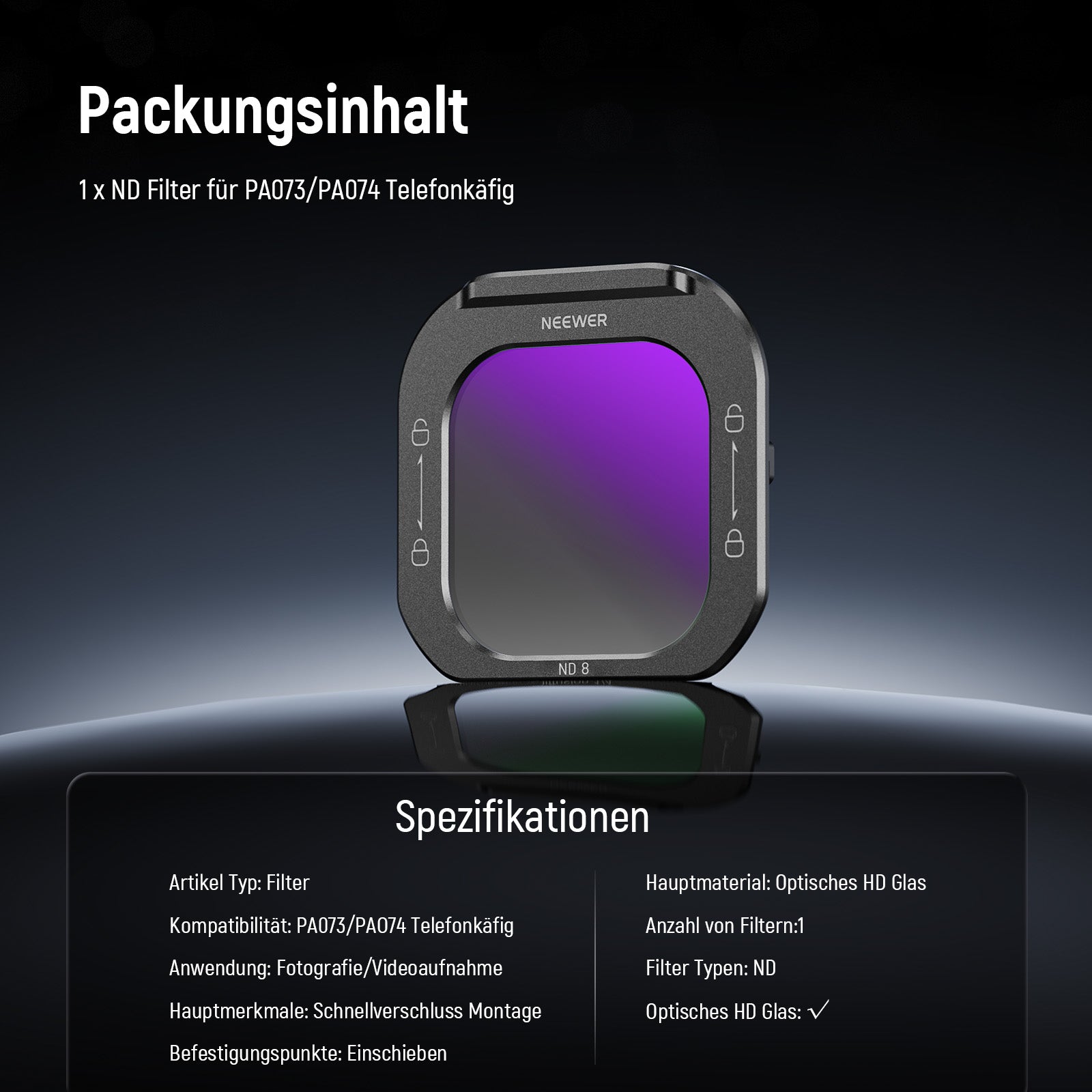 NEEWER ND8/ND16/ND32/ND64 Handy Objektikfilter für iPhone PA073/PA074 Käfige