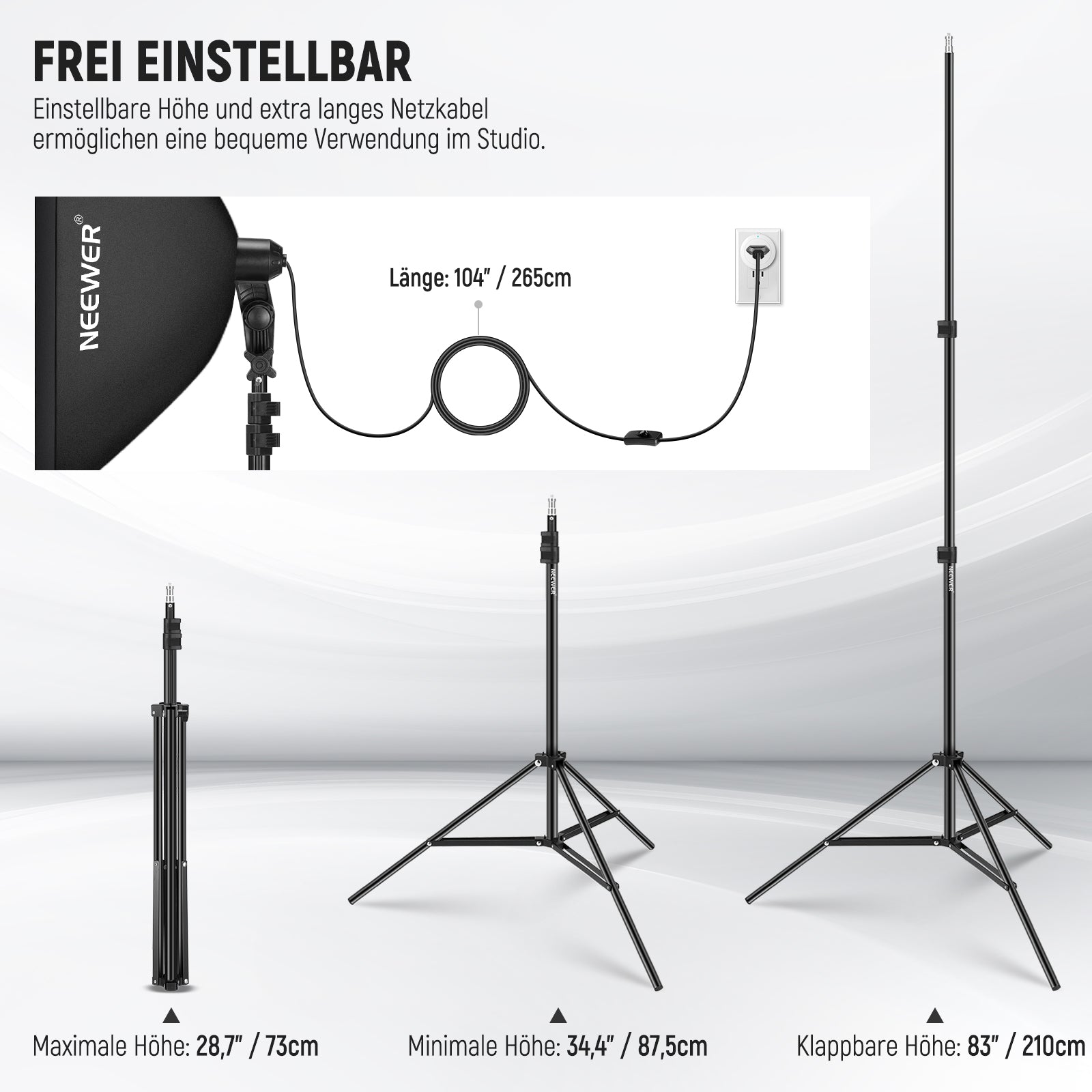 • Maximale Höhe des Lichtstativs: 83"/210 cm
